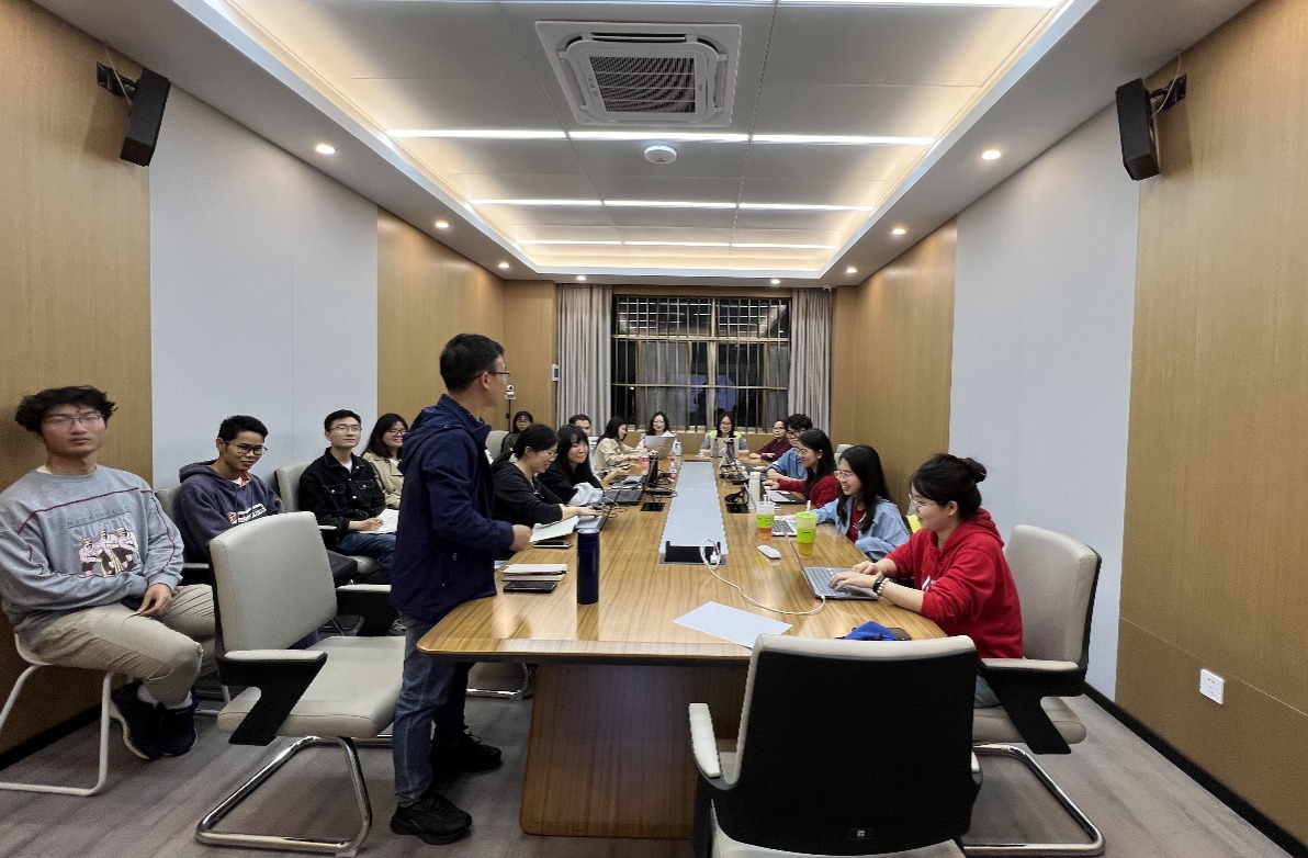 232研讨室讨论声此起彼伏,现场气氛热烈,学院副教授、博士生导师梁世昌如往常的一样,每周组织“敏兰轩”课题组成员进行学术交流讨论。学院助理教授耿利肖老师以及梁世昌老师的研究生、本科生26名师生参加此次交流会。