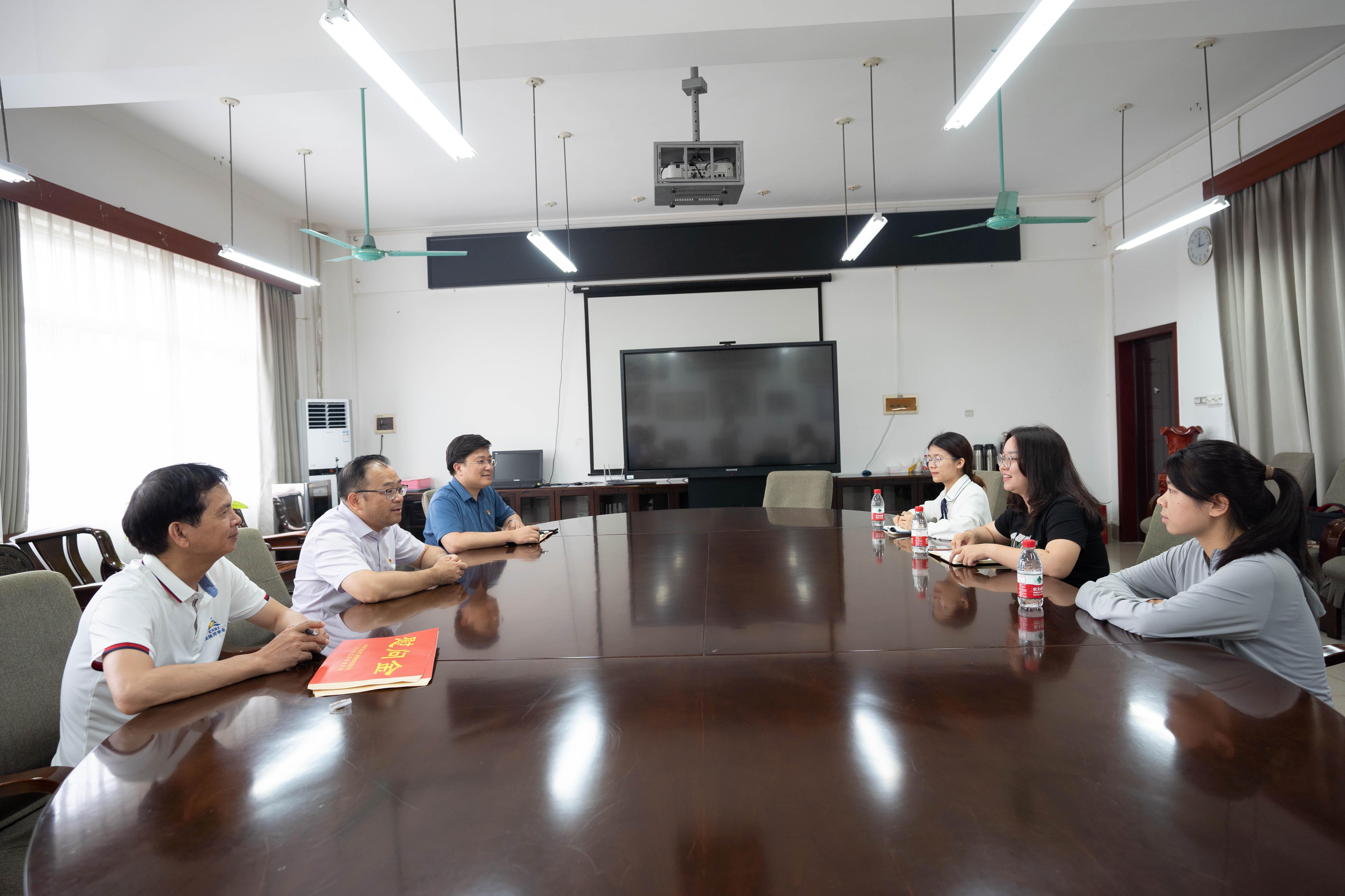 在学院420会议室,院党委书记罗诚,院党委副书记、院长朱帮助,副院长廖东红与黑料网