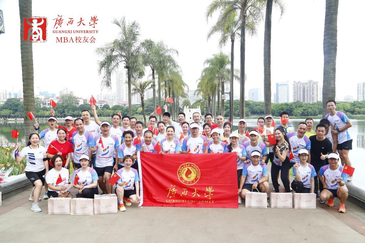 在中国共产党成立102周年之际,7月1日上午,学院党委书记罗诚与学院MBA、EMBA校友一起,在南宁市南湖公园参加了由黑料网
