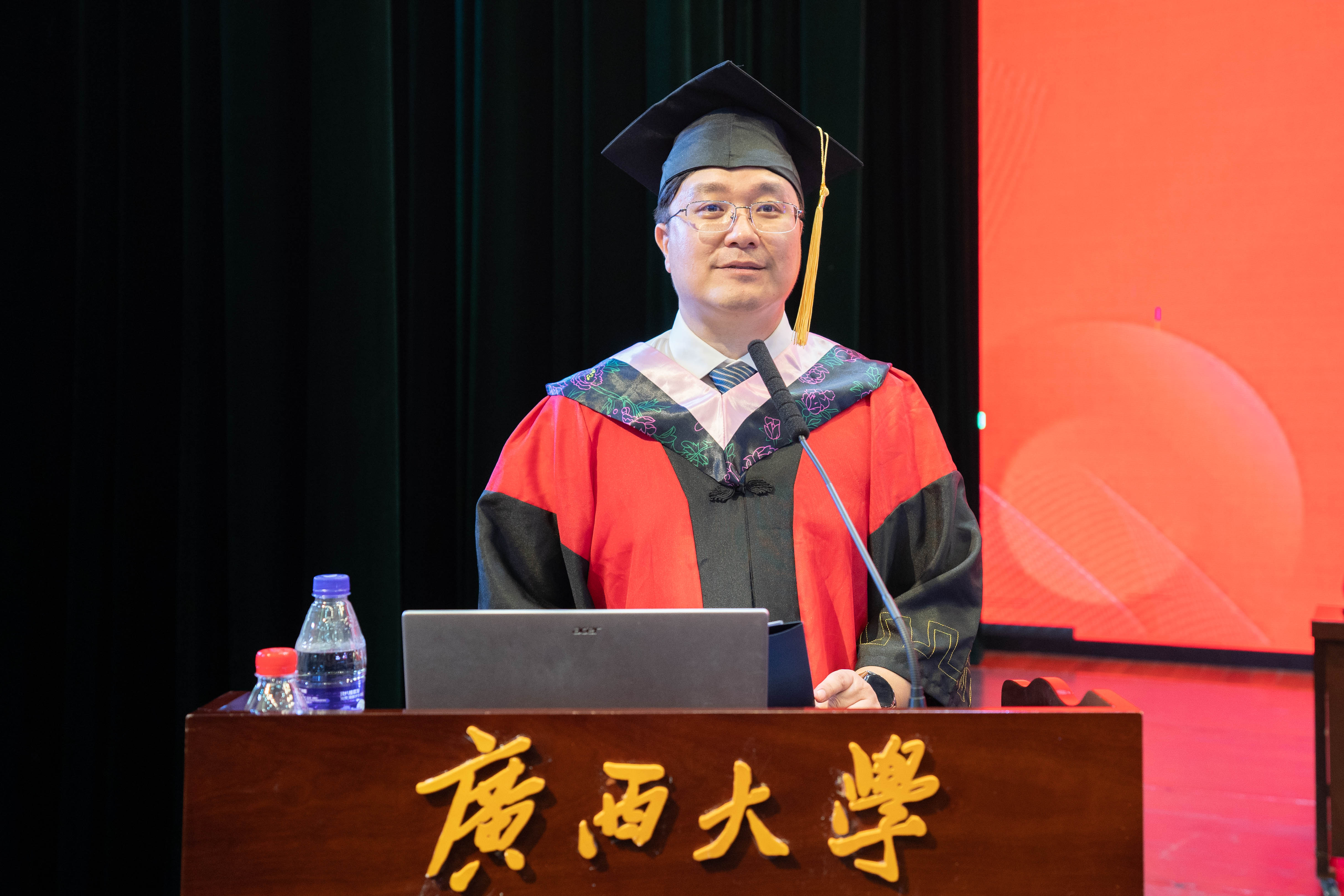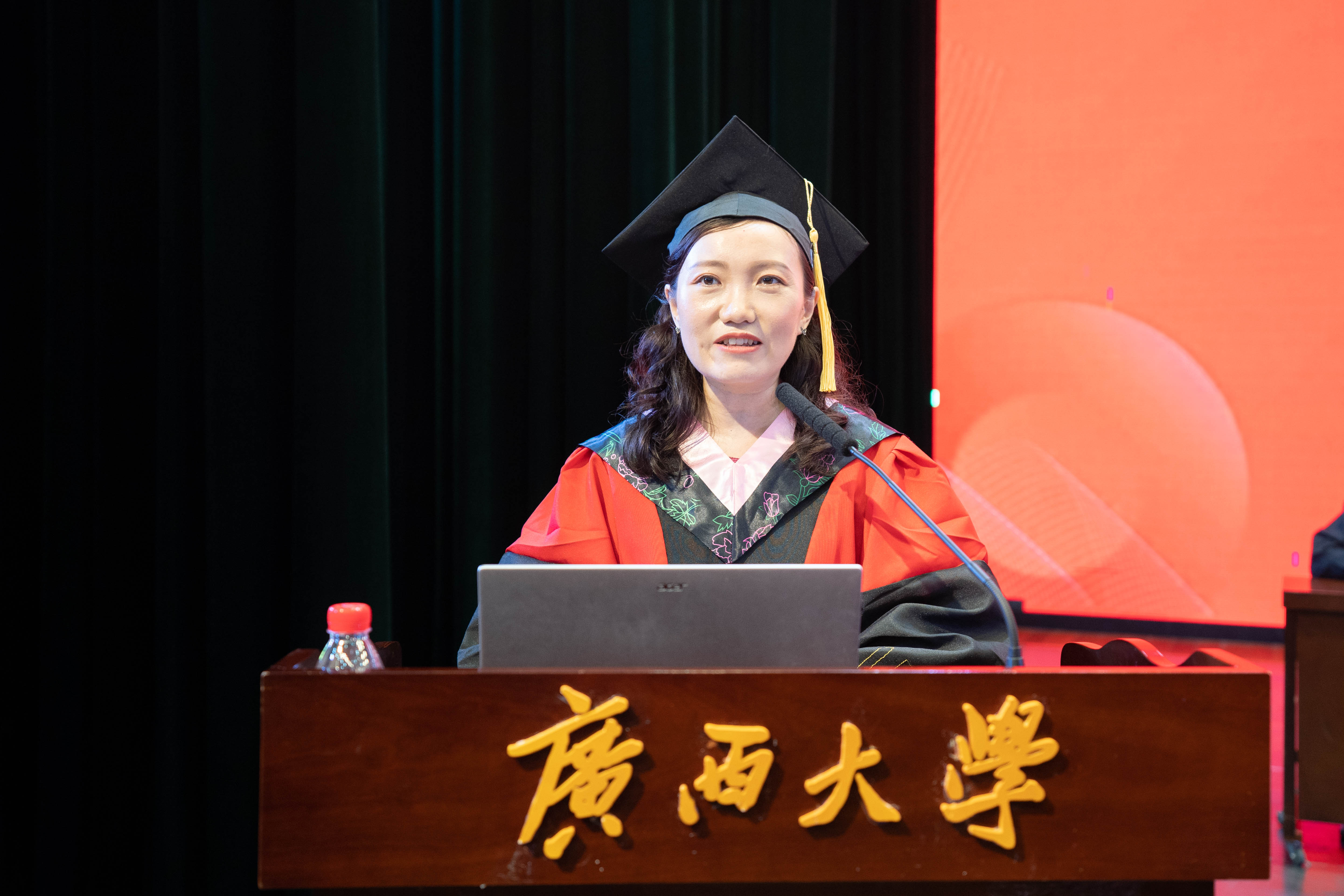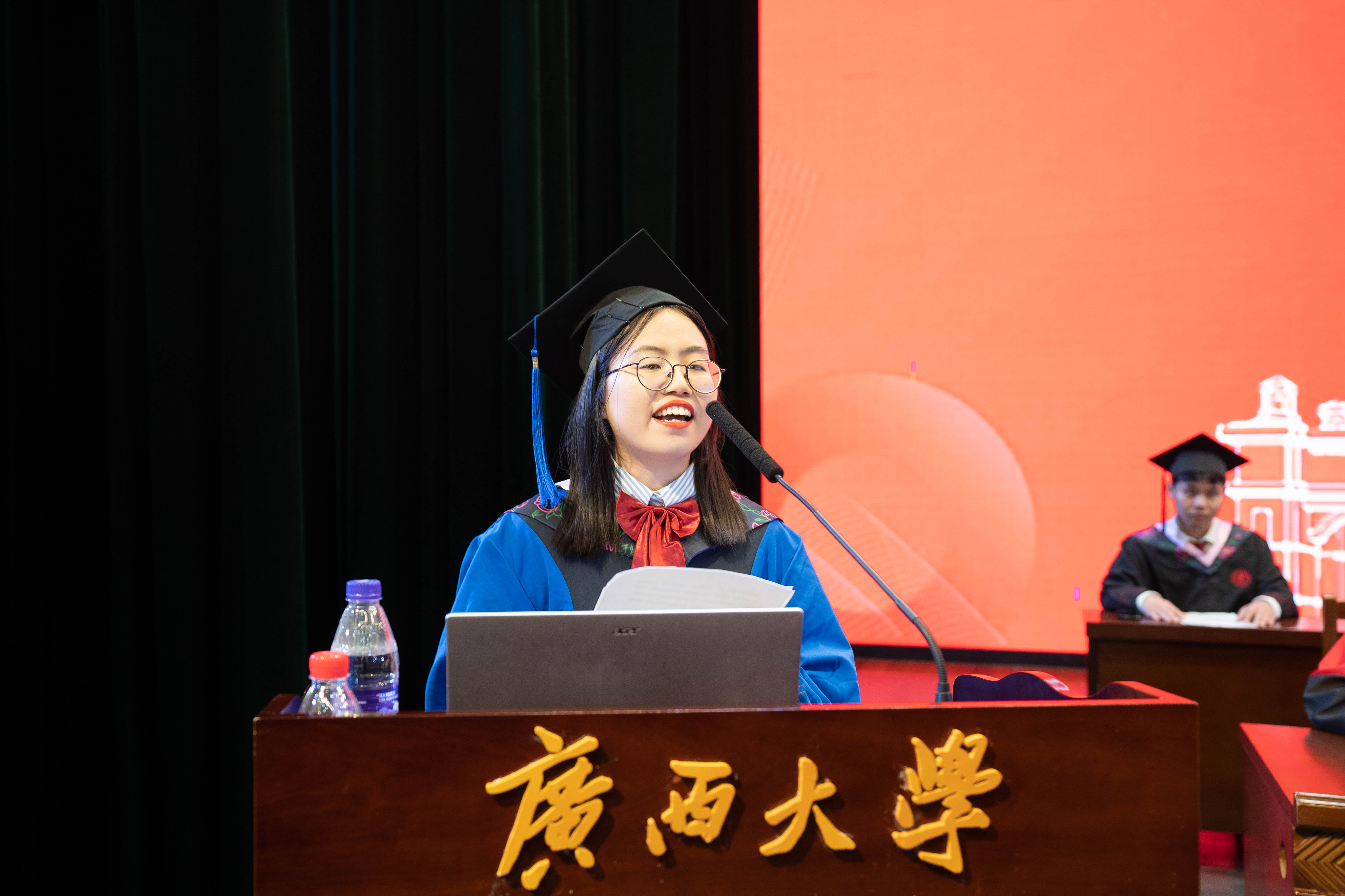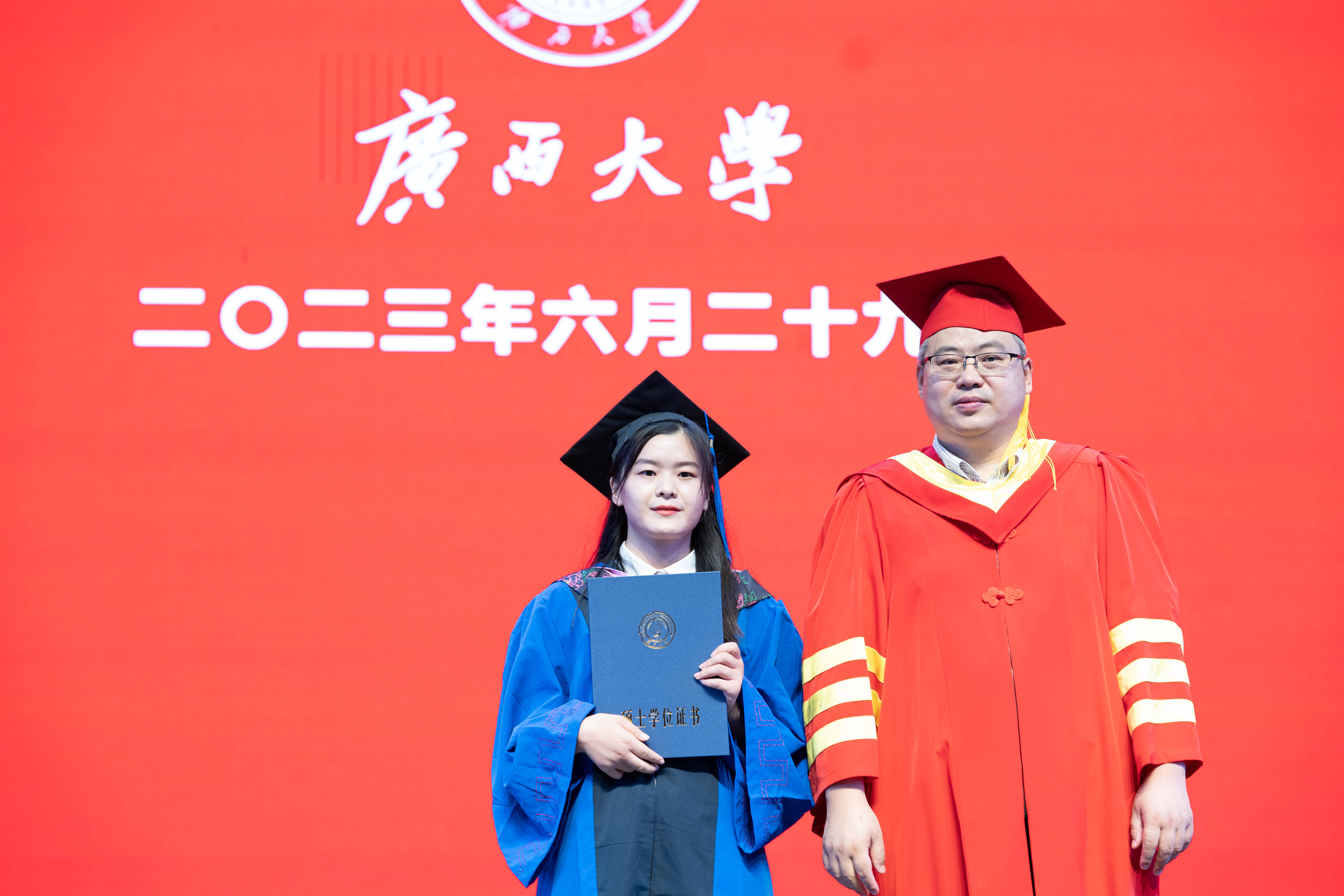 在雄壮激昂的国歌奏唱中,本届毕业典礼暨学位授予仪式拉开帷幕。学院党委书记罗诚为获得广西普通高等教育优秀毕业生、黑料网