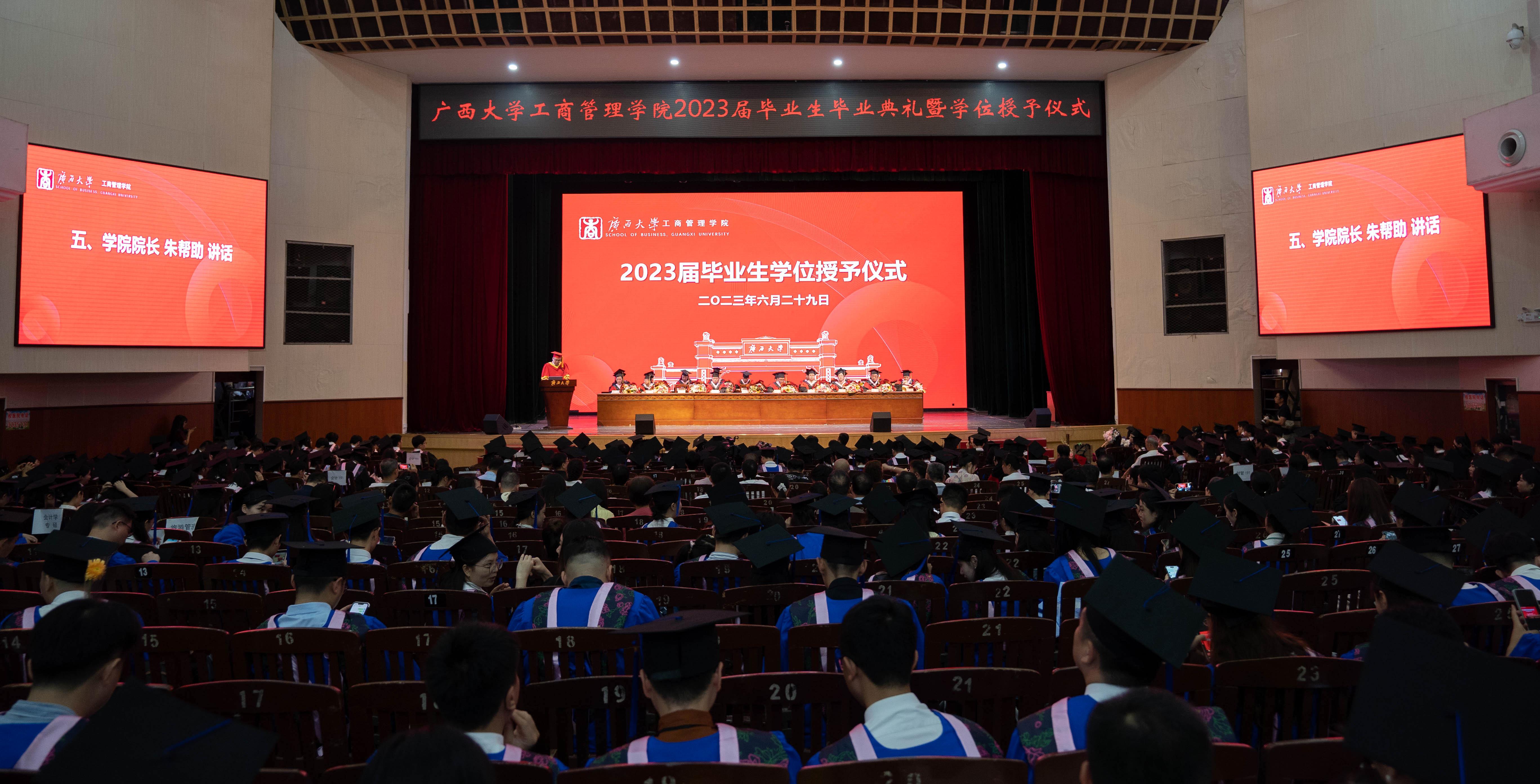 在学校大礼堂举行2023届毕业生毕业典礼暨学位授予仪式。全体院领导和各系教师代表出席典礼,2023届776名毕业生(研究生489人、本科生287人)参加了典礼。典礼由学院党委副书记黄晋主持。