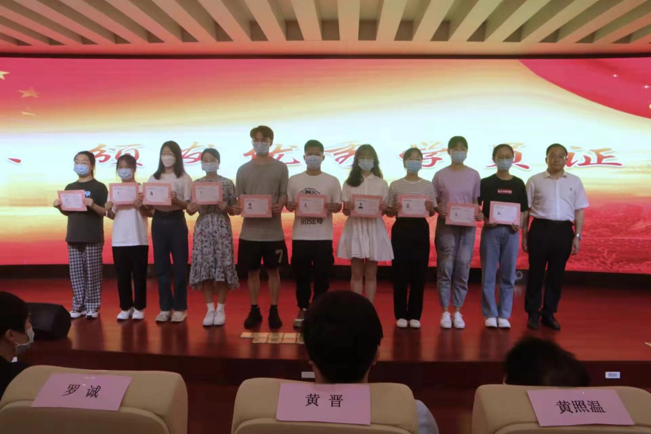 开班仪式上,罗诚书记为上一届培训班的十位优秀学员颁发荣誉证书并合影留念,并与现场的学员一起诵读习近平总书记对建党百年的献词(节选)。