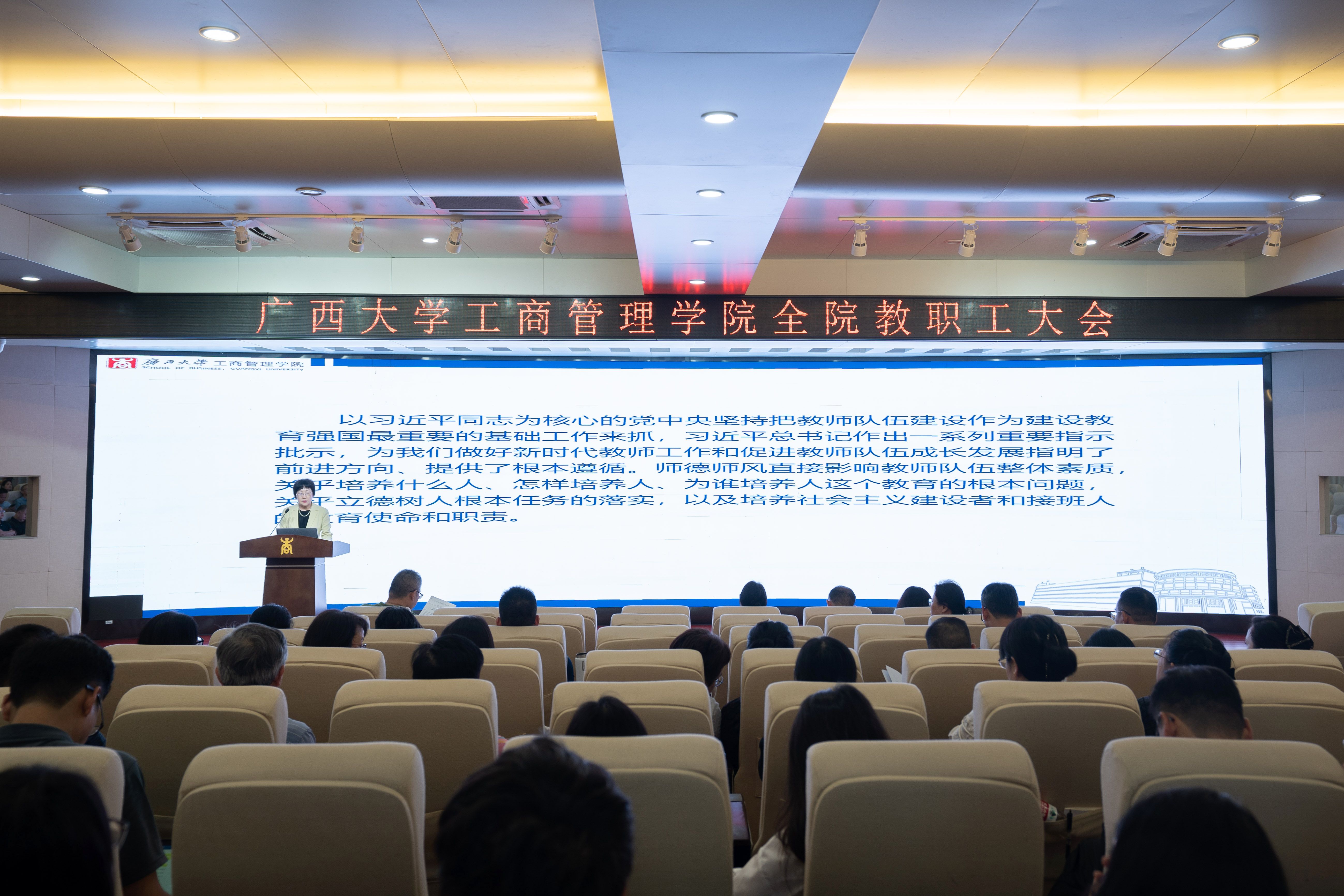 在学院128报告厅召开全院教职工大会,就学院上半年发展情况进行通报,并对下一阶段重点工作进行安排和部署。学院院长朱帮助、党委副书记肖克宁,副院长朱少英、申韬、刘民坤、廖东红出席会议,全体教职工参加了会议。会议由朱帮助院长主持。