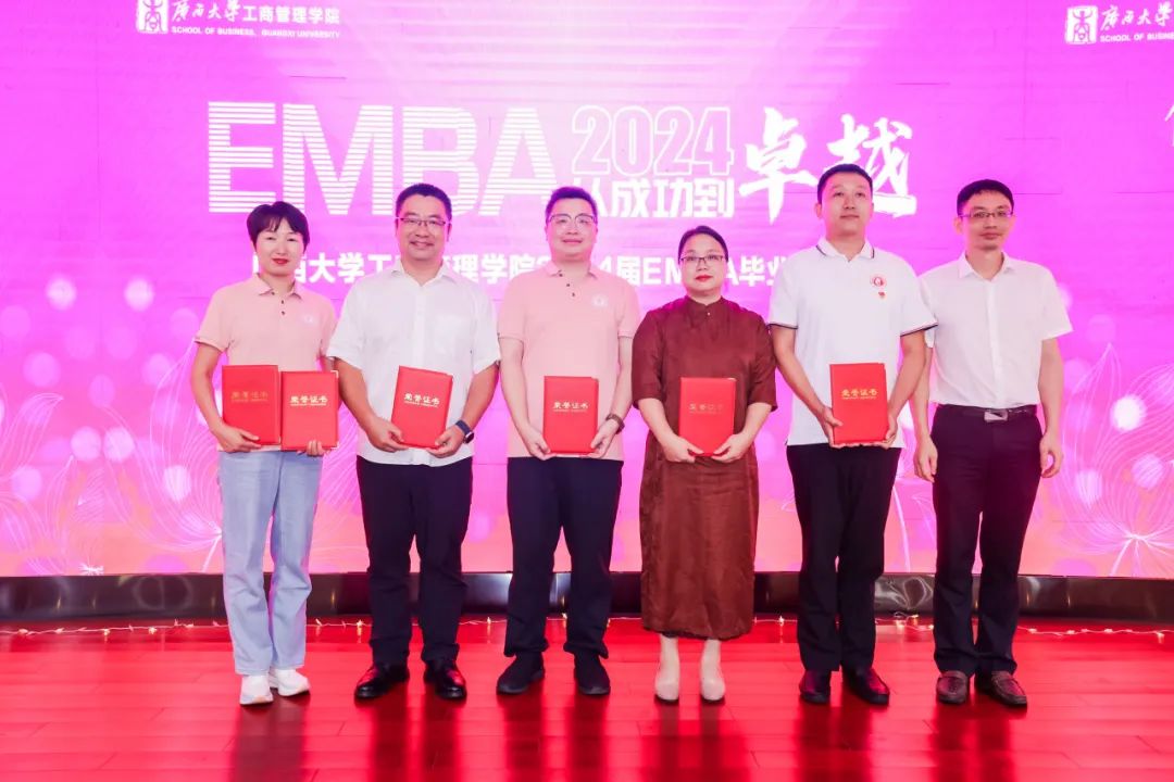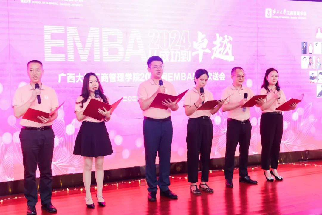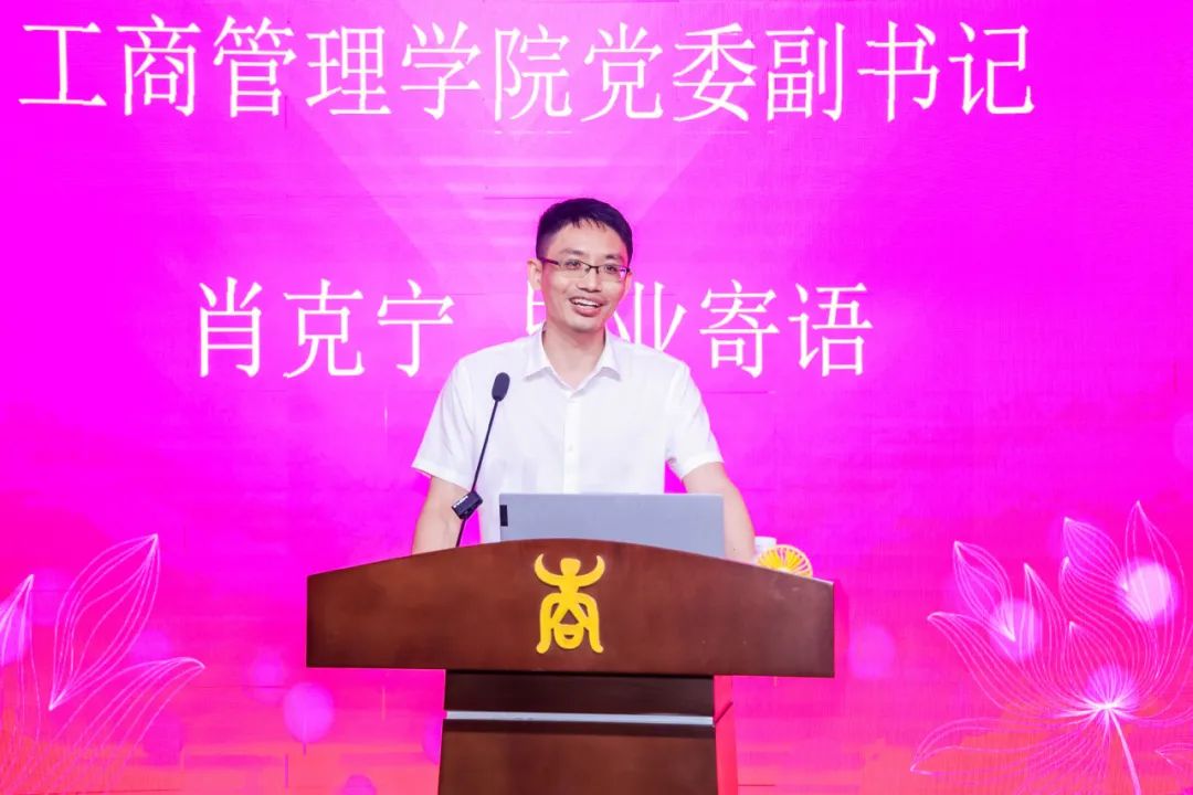 肖克宁副书记,申韬副院长、廖东红副院长也分别向EMBA毕业生寄语,期望大家创造更辉煌的成就,为社会贡献更多的力量。导师代表唐玉生、覃朝勇,EMBA教育中心主任宁雪莲、EMBA班主任代表黄子芸、邓丹表达了对同学们深深的情感与不舍。