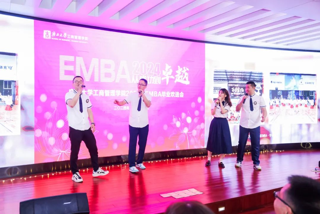 活动中,散文诗朗诵《时光的礼赞》、歌曲《光阴的故事》等,表达了同学们对EMBA学习生活的回顾和怀念,对老师同学的感谢与不舍。现场热烈而温馨,欢呼声此起彼伏,大家都被这份情谊所感染。
