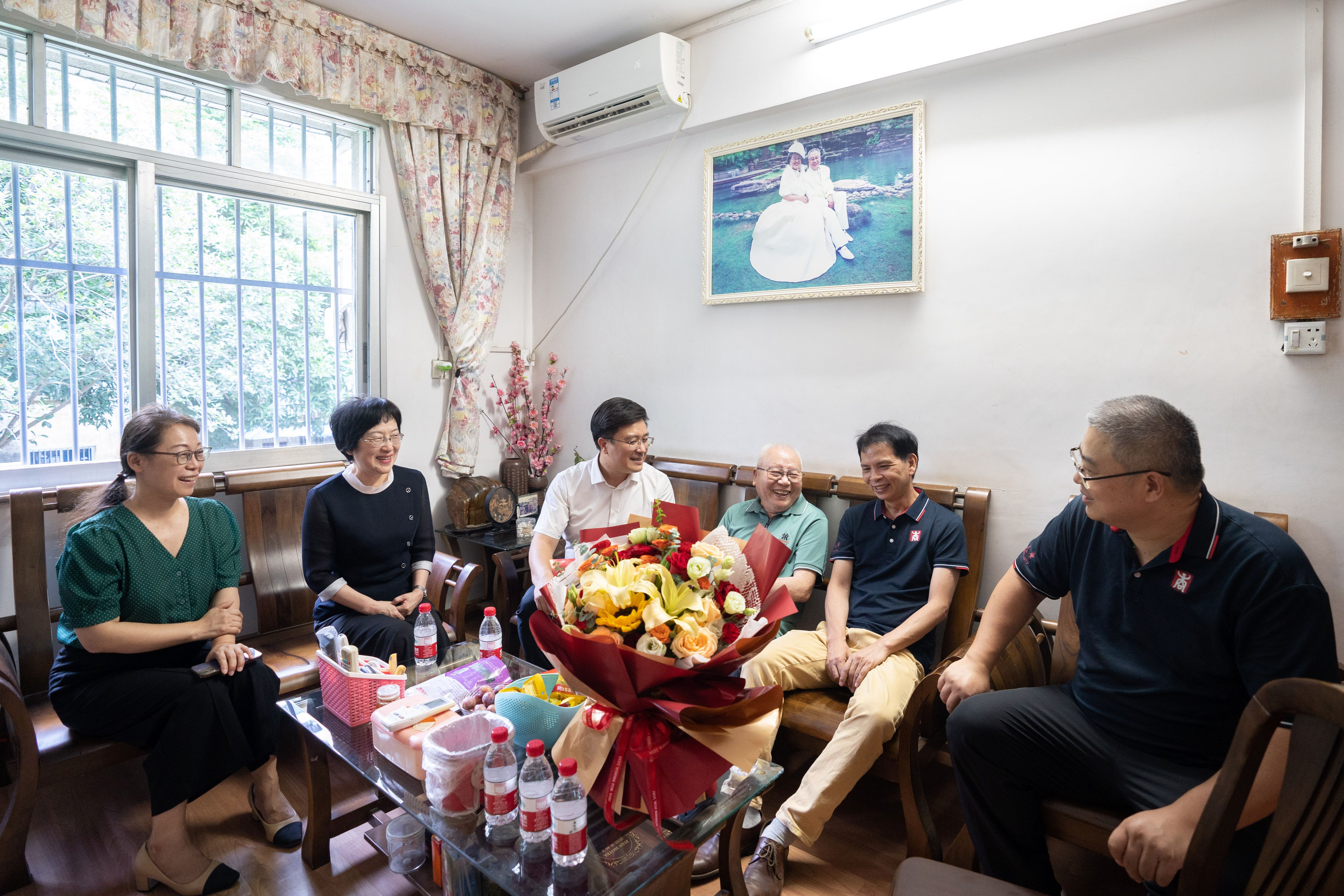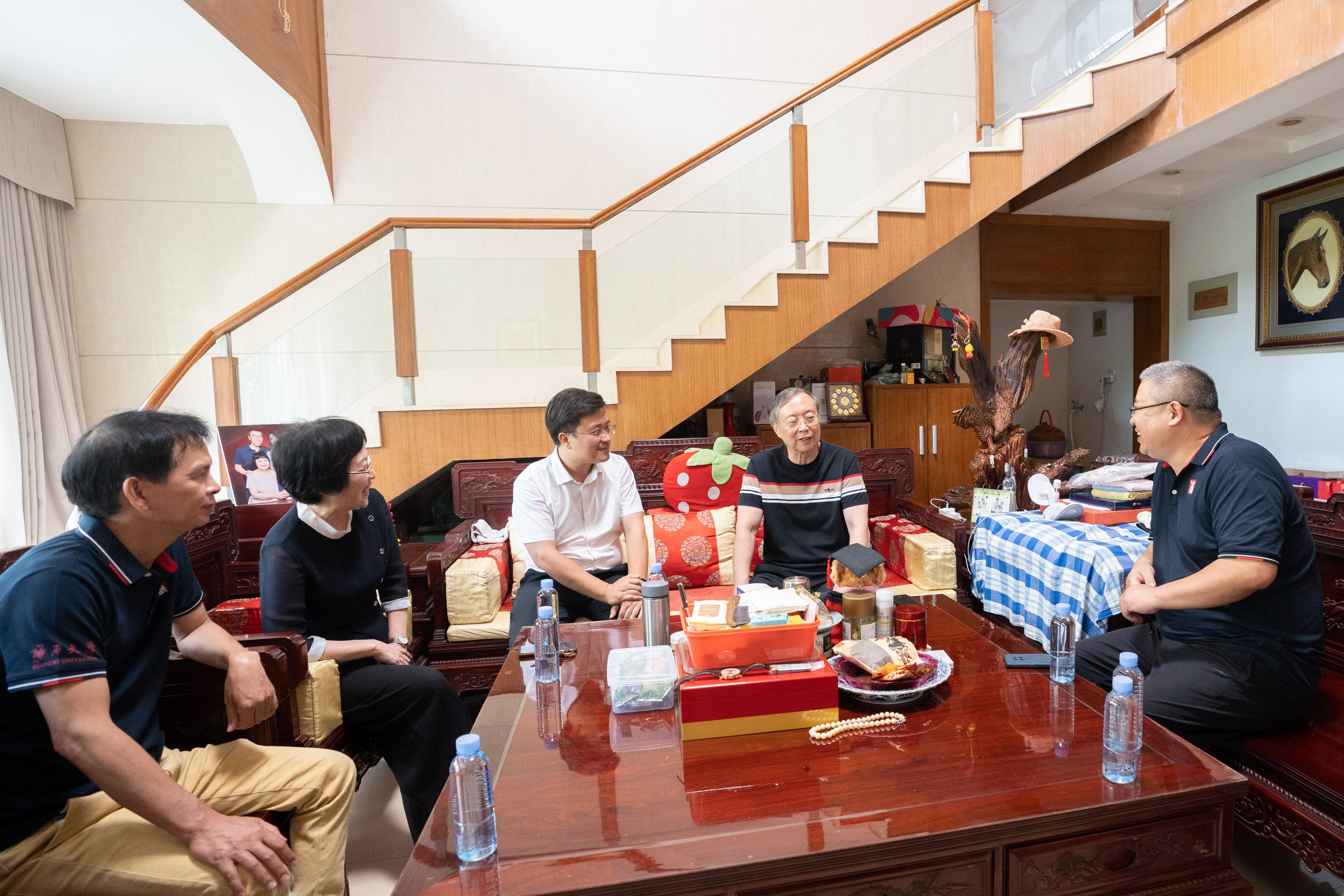 学院领导一行与左昌鸿老师(右三)亲切交流