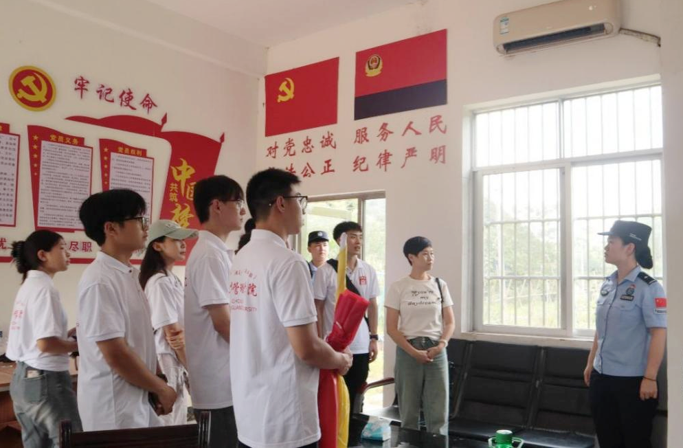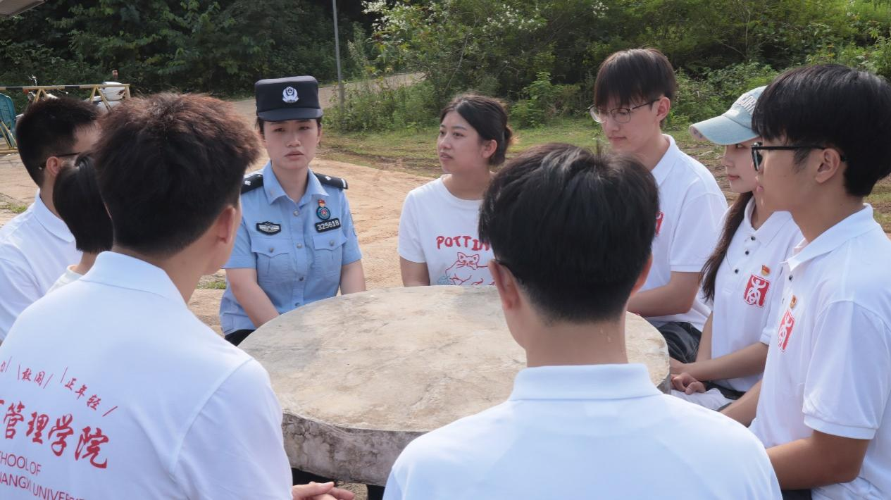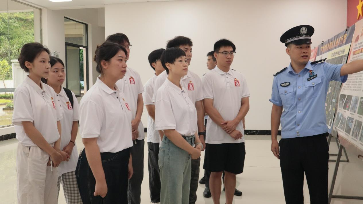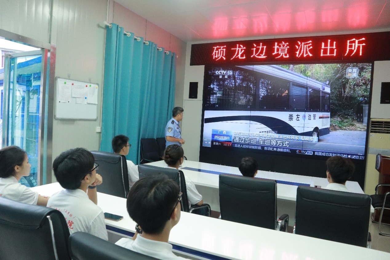 在硕龙边境派出所,该所民警向实践团成员分享了边境派出所工作中的点滴。从惊心动魄的抓捕行动,严打跨境犯罪及“黄赌毒”、“盗抢骗”等违法犯罪活动,到德天女警先锋队如春风般温暖的服务,无一不彰显着守护国门的坚定决心与柔情。据悉,该所先后荣获集体二等功、广西三八红旗集体等殊荣。