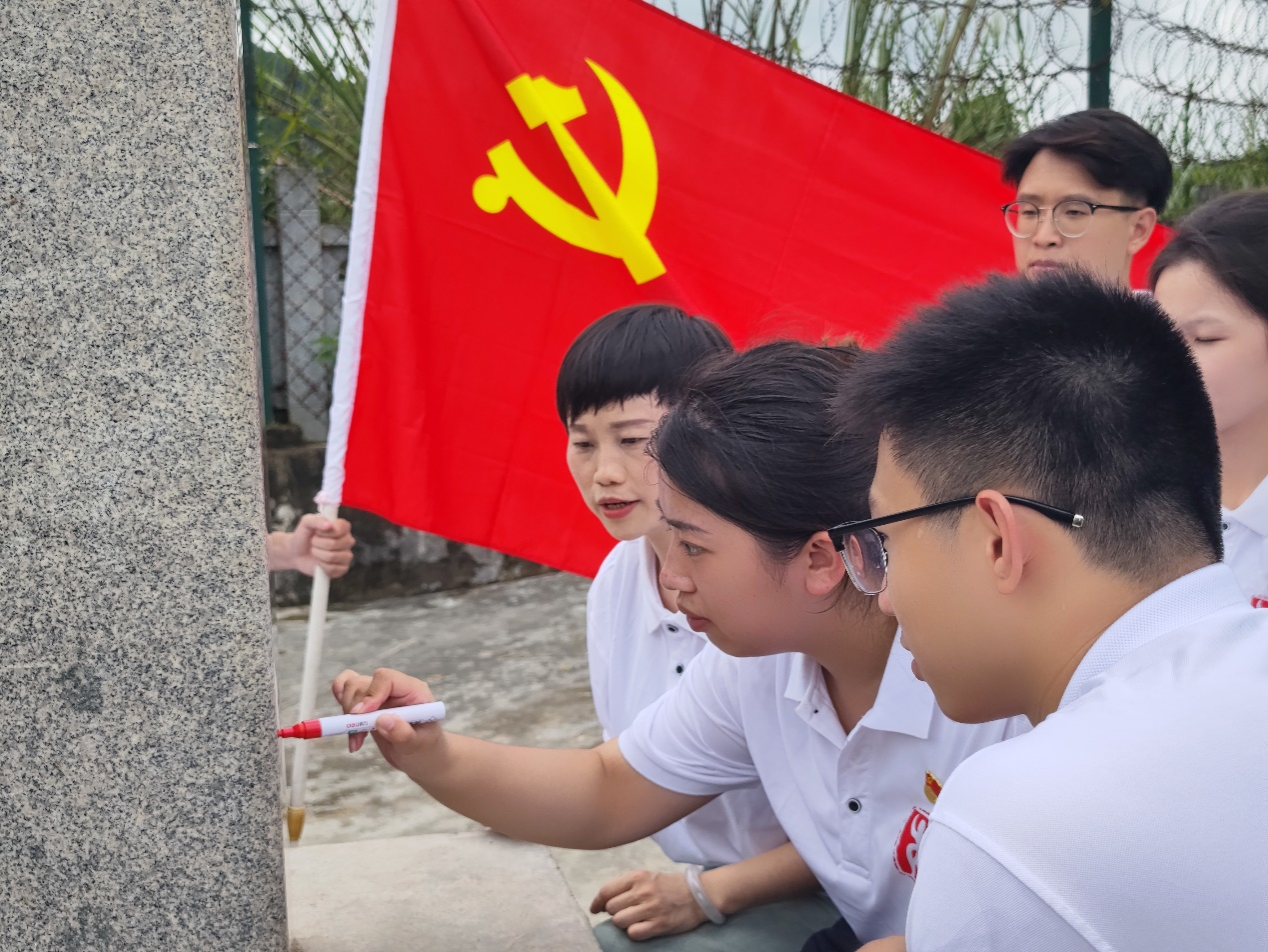 实践团成员为842(3)号界碑描红