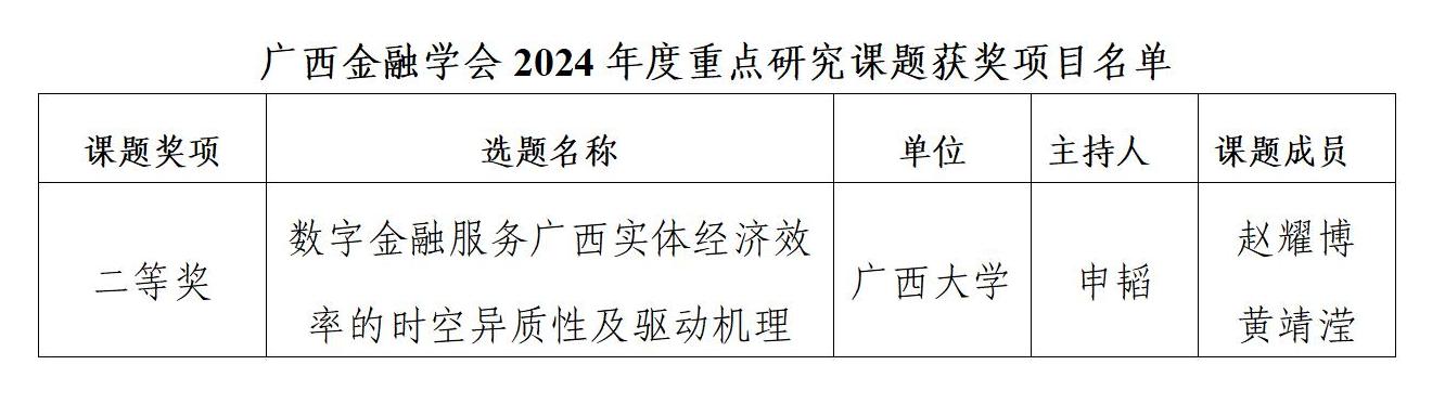 申韬教授主持的《数字金融服务广西实体经济效率的时空异质性及驱动机理》课题荣获二等奖。