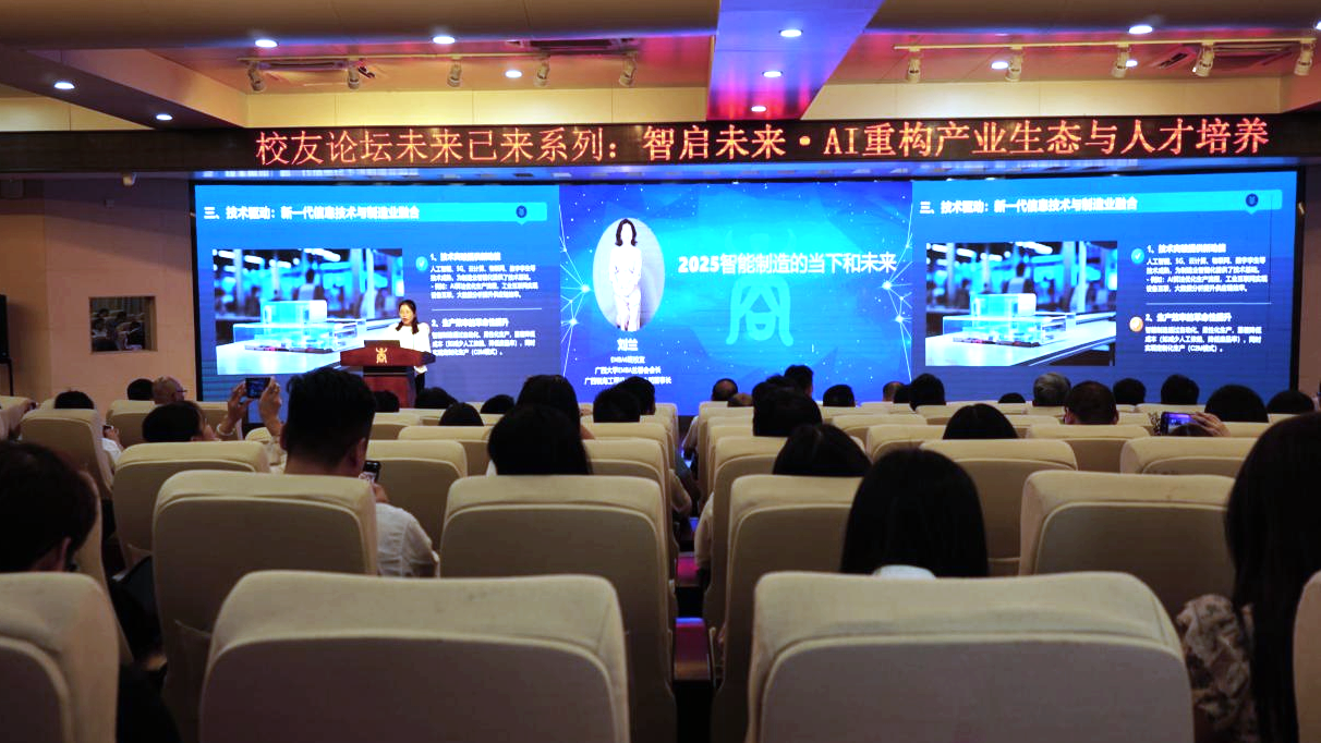 广西锐海工程机械董事长刘兰(EMBA6班校友)结合企业智能工厂转型案例,认为AI将彻底打破传统制造业边界,呼吁高校将前沿技术纳入课程,培养既懂技术又会管理的复合型人才,助力中国从“制造大国”迈向“制造强国”。