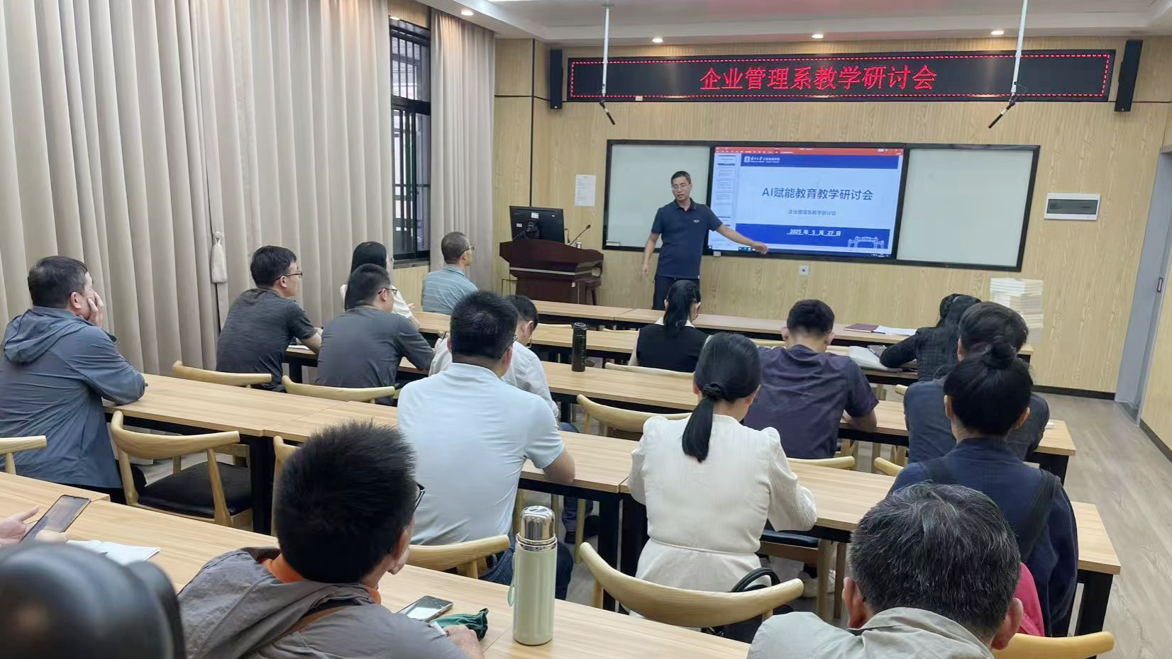 5月27日,企业管理系全体教师围绕“AI赋能教育教学”主题,在学院509A教室开展基层教学组织研讨会。