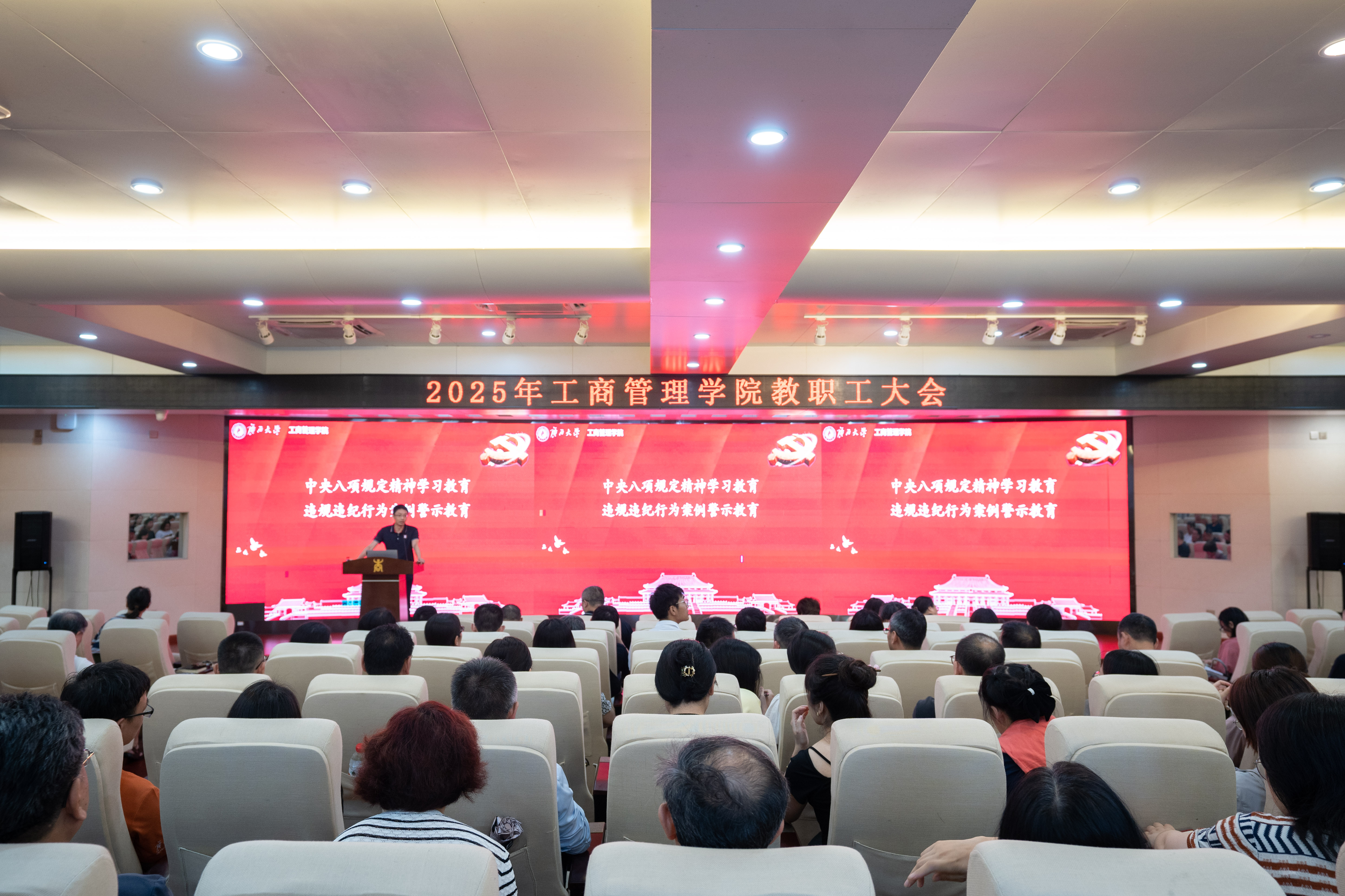 会上,肖克宁首先面向全体教职工进行了深入贯彻中央八项规定精神学习教育的违规违纪行为案例警示教育,传达了党中央、自治区党委和学校党委关于开展深入贯彻中央八项规定精神学习教育的部署要求,并结合近年来教育系统内发生的典型违规违纪案例,深刻剖析了违规违纪行为对个人、家庭和学院带来的严重危害,提醒教职工要以案为鉴、以案明纪、以案促改,时刻保持清醒头脑,加强作风建设,严守中央八项规定精神等有关要求,树立良好师德师风。