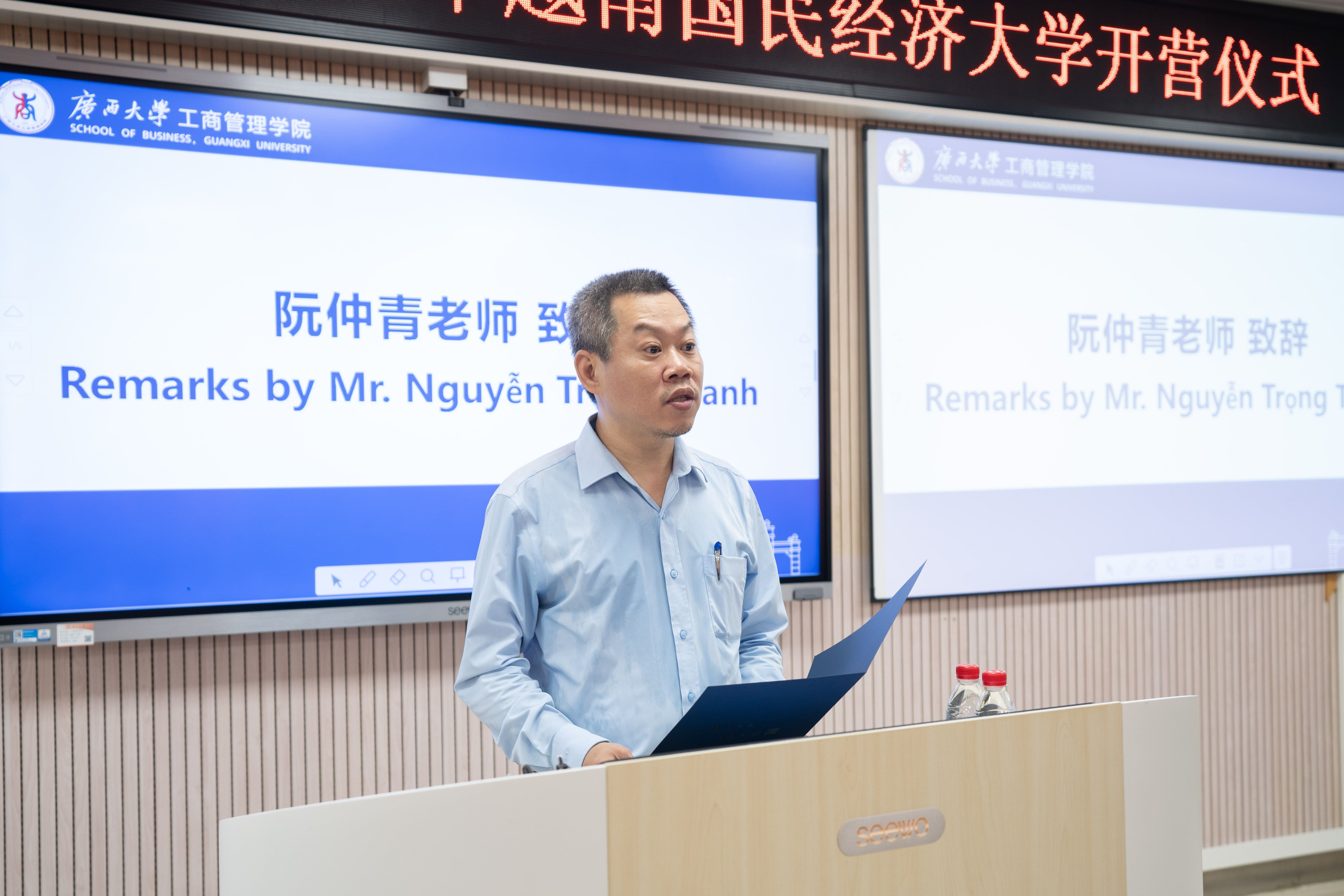 阮仲青老师在讲话中表达了越南国民经济大学对中越文化交流与青年友谊的双重期待,对黑料网