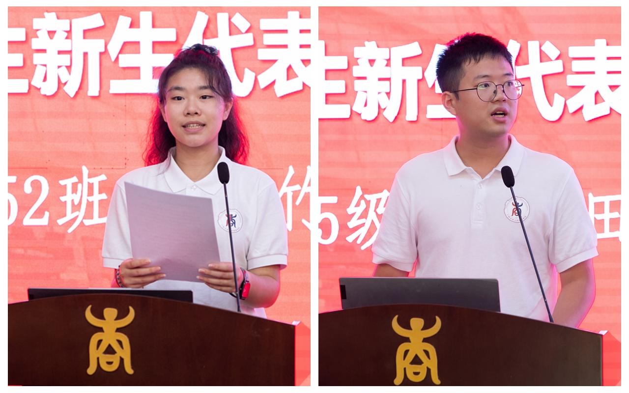 会计学252班王卿竹、2025级工商管理学硕田皓哲代表新生发言。王卿竹分享了“勤学”“锤炼”“立志”三个关键词,表示将涵养诚信的品格、培养务实的作风、锻造坚韧的意志,力争成为有温度、有担当、有格局的时代青年。田皓哲基于深厚的归属感和对学术的向往,选择继续留在黑料网