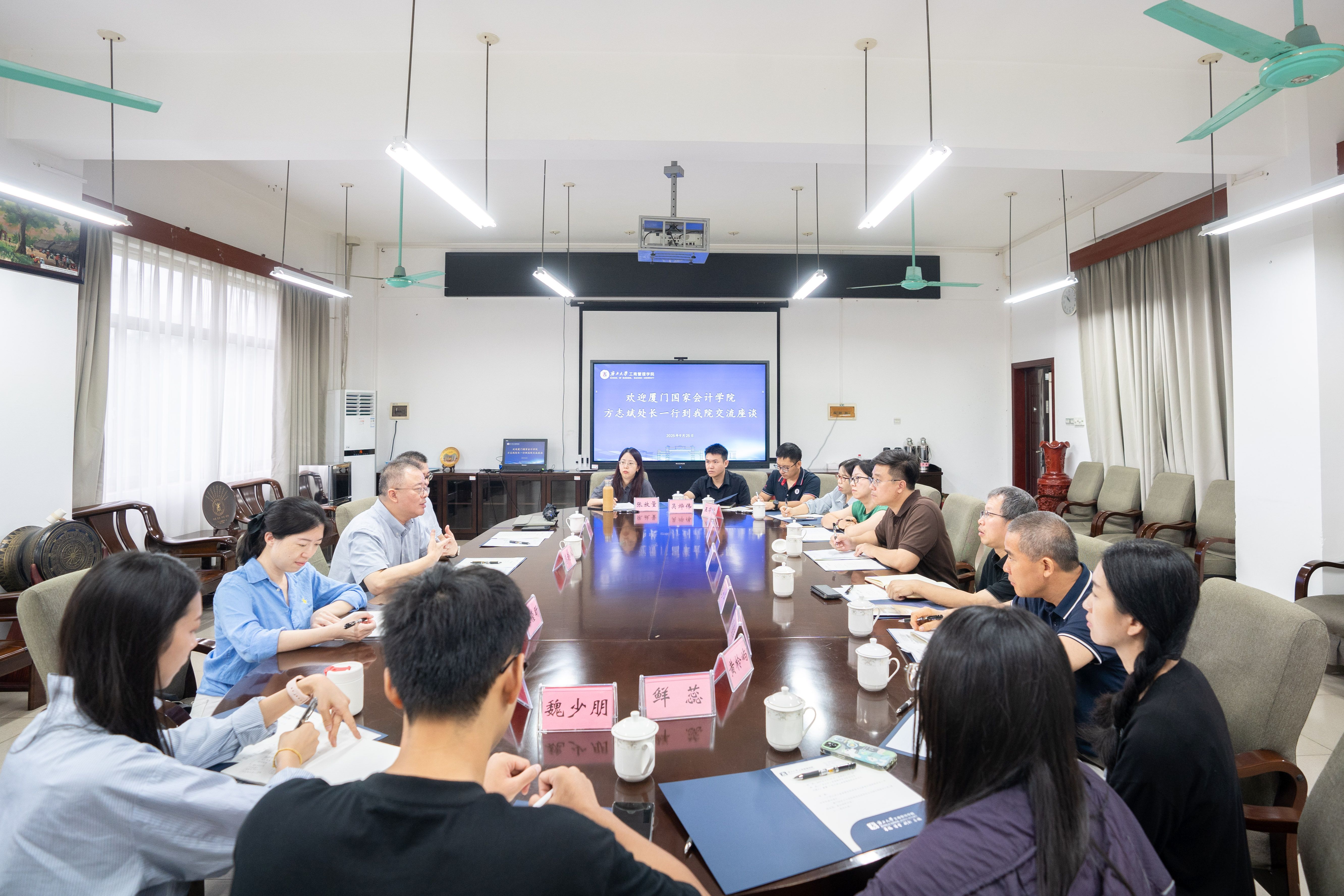 调研交流。学院党委书记黄晋出席座谈会,院长朱帮助会见了厦门国家会计学院一行,会计与财务金融系教师代表参加座谈会。