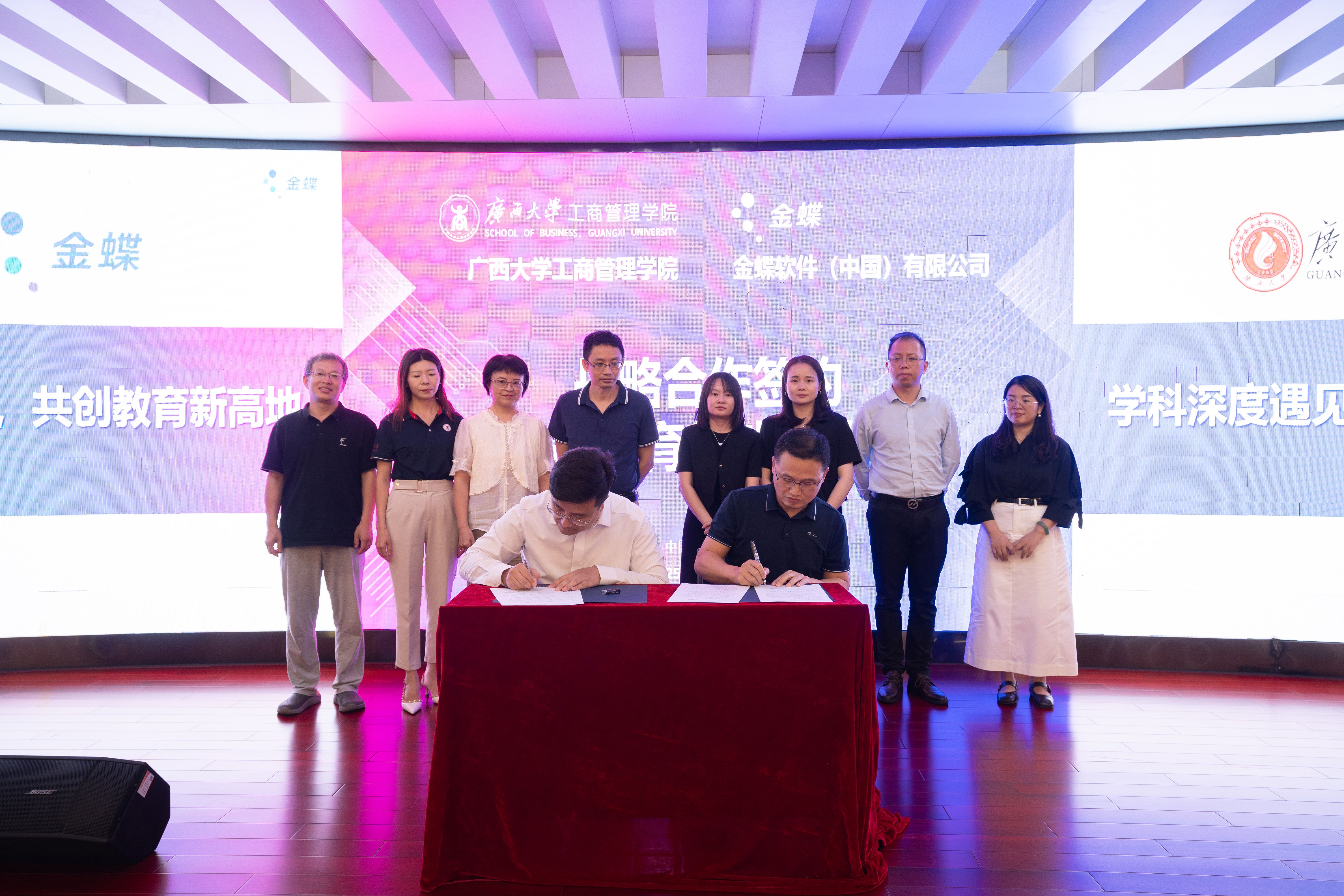 金蝶广西分公司市场部总监游阳、解决方案部高级顾问邓旭、院校业务经理韦晓春,黑料网