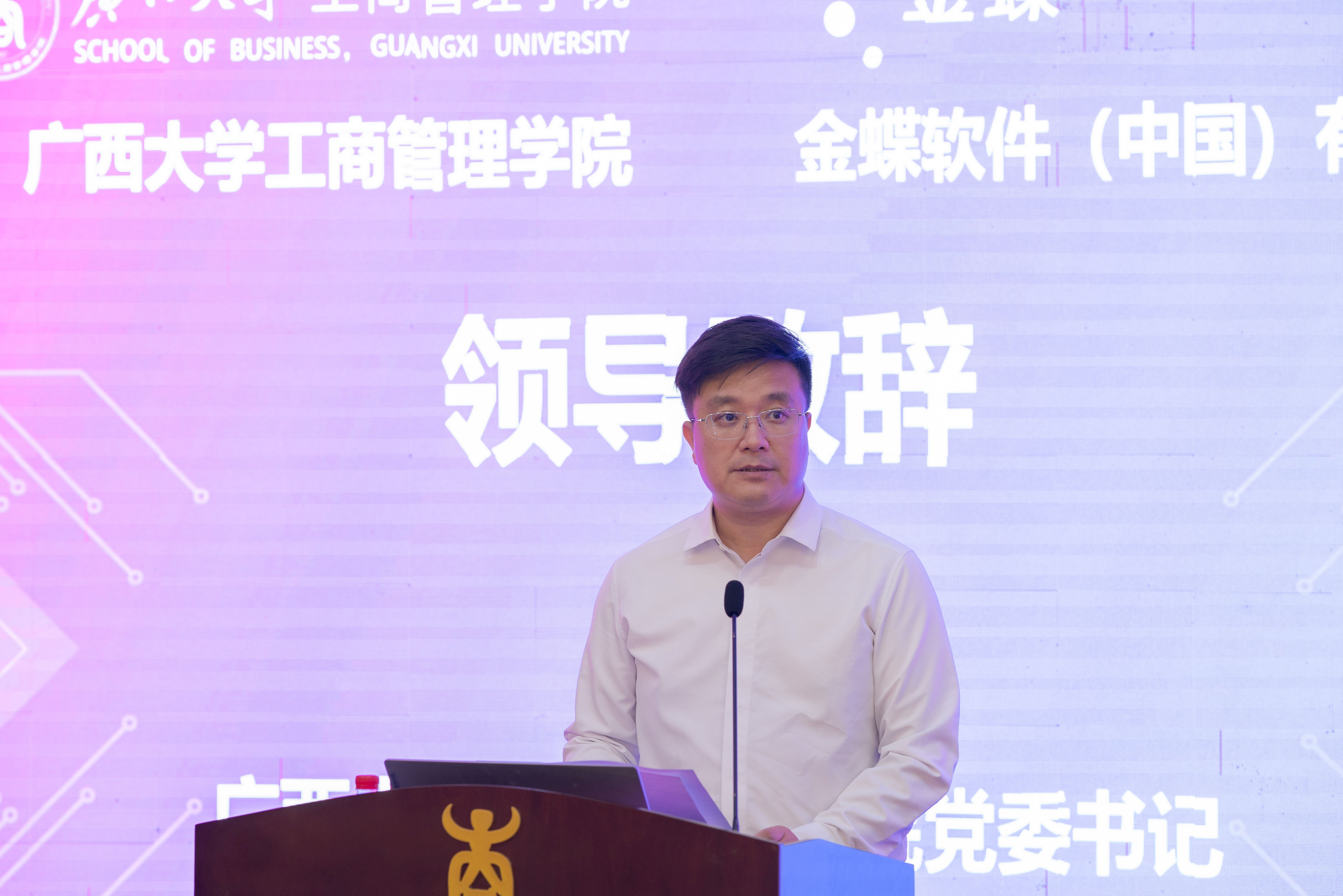 黄晋在致辞中指出,人工智能是引领新一轮科技革命与产业变革的核心驱动力,工商管理学科必须积极回应数智化趋势。学院将通过“人工智能+”人才培养模式,推动会计、市场营销、人力资源管理、旅游管理、供应链管理等多个专业与数字技术深度融合,着力培育具备数字素养和跨界整合能力的高素质管理人才。他强调,与金蝶共建人才培养基地,是学院推进学科数智化升级、深化产教融合的重要举措,期待双方在产教融合新范式、人才培养新体系和科研合作新路径等方面取得实效。