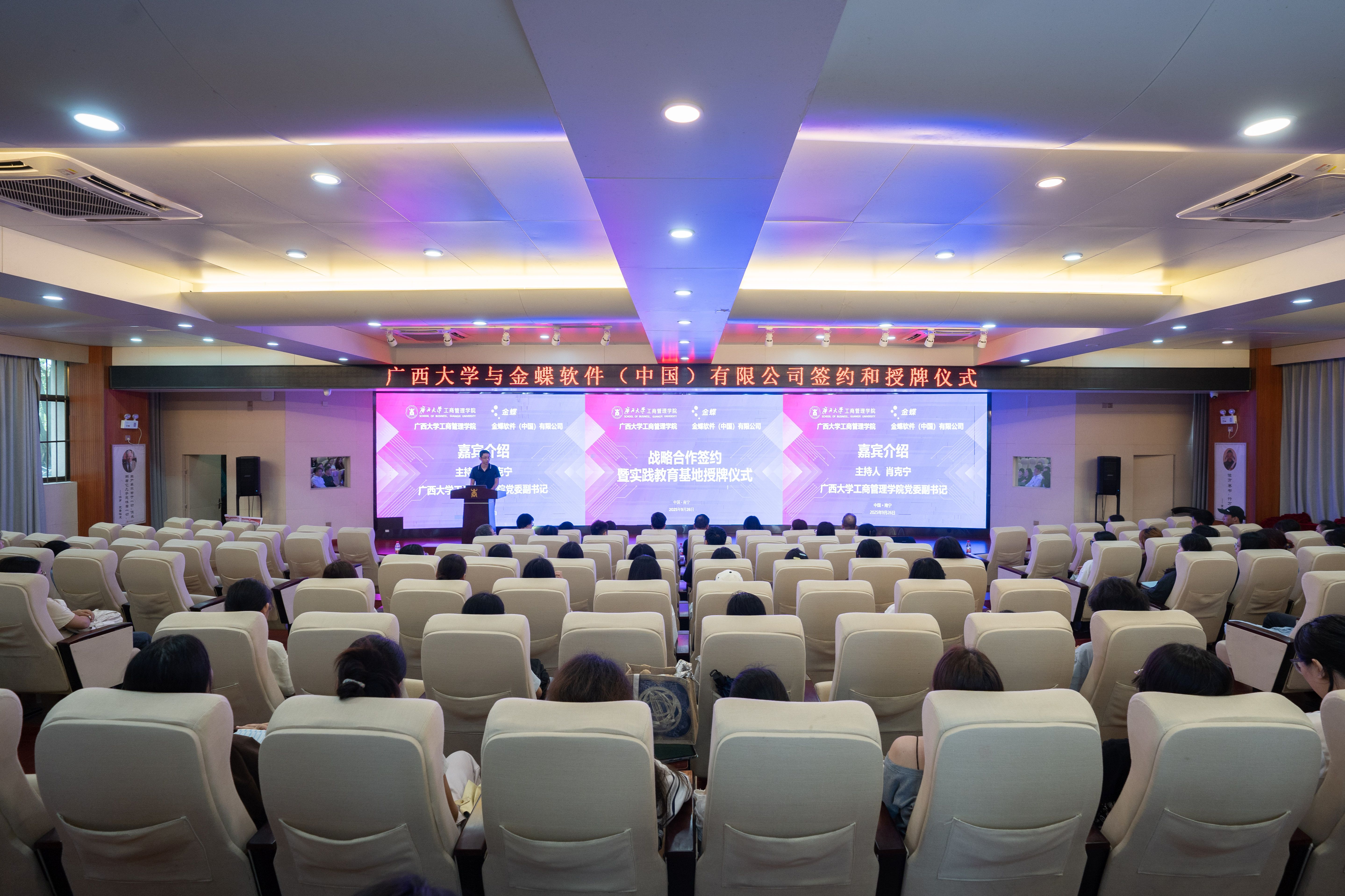 党委书记黄晋、金蝶软件(中国)有限公司市场中心副总裁陈跃、市场中心培训教育事业部营销总监赵亚妮等领导出席仪式,院长朱帮助会见了企业代表,学院党委副书记肖克宁主持会议。