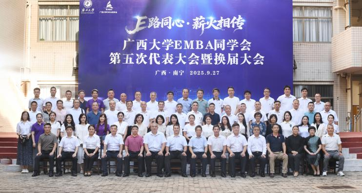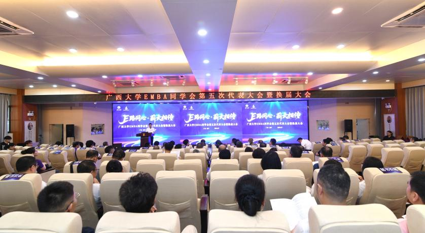 在换届大会上,校党委副书记宁旭初代表学校向EMBA校友长期以来对母校的关心和支持表示感谢。他与校友们分享了学校在融入国家和区域发展战略、增强服务广西经济社会发展效能上取得的重大标志性成果。他强调,校友是母校宝贵的财富,是推动学校高质量发展的重要力量。学校历来重视校友与社会服务工作,将持续为广大校友搭建更多合作平台、提供全方位服务。他希望校友会严守意识形态阵地,筑牢思想引领根基,以校史校训为精神内核,汇聚起向上向善的校友力量;凝聚校友合力,共筑发展共同体,形成校友与学校双向价值共创的良性循环;聚焦服务赋能,提升校友价值,为建设壮美广西贡献西大力量。