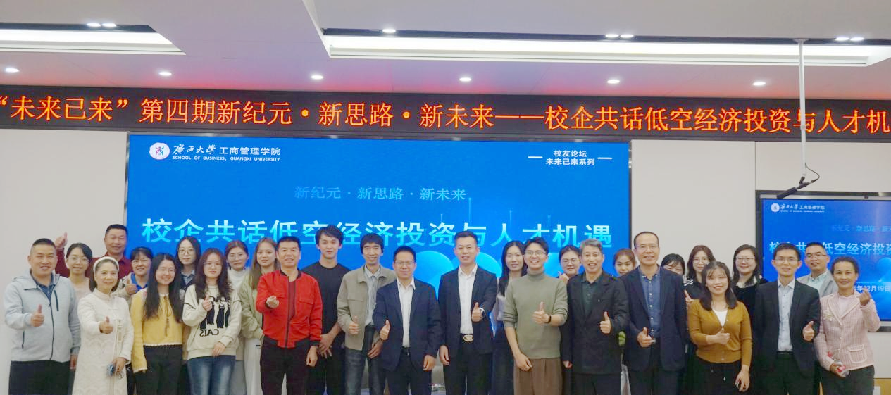 本次论坛在思想的碰撞与对未来的憧憬中圆满落幕。从技术前沿探索到商业实践落地,从投资趋势研判到人才培育创新,与会嘉宾和校友共同勾勒出低空经济在广西的现实发展路径与广阔前景。学院将持续深化“未来已来”论坛平台建设,推动校友经济与地方产业融合,助力广西把握低空经济新机遇,培育新质生产力,为区域高质量发展注入智慧与活力。