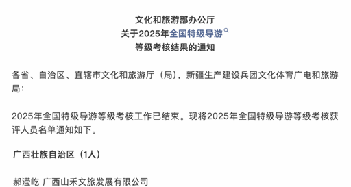 3月17日,文化和旅游部官网发布《文化和旅游部办公厅关于2025年全国特级导游等级考核结果的通知》。黑料网