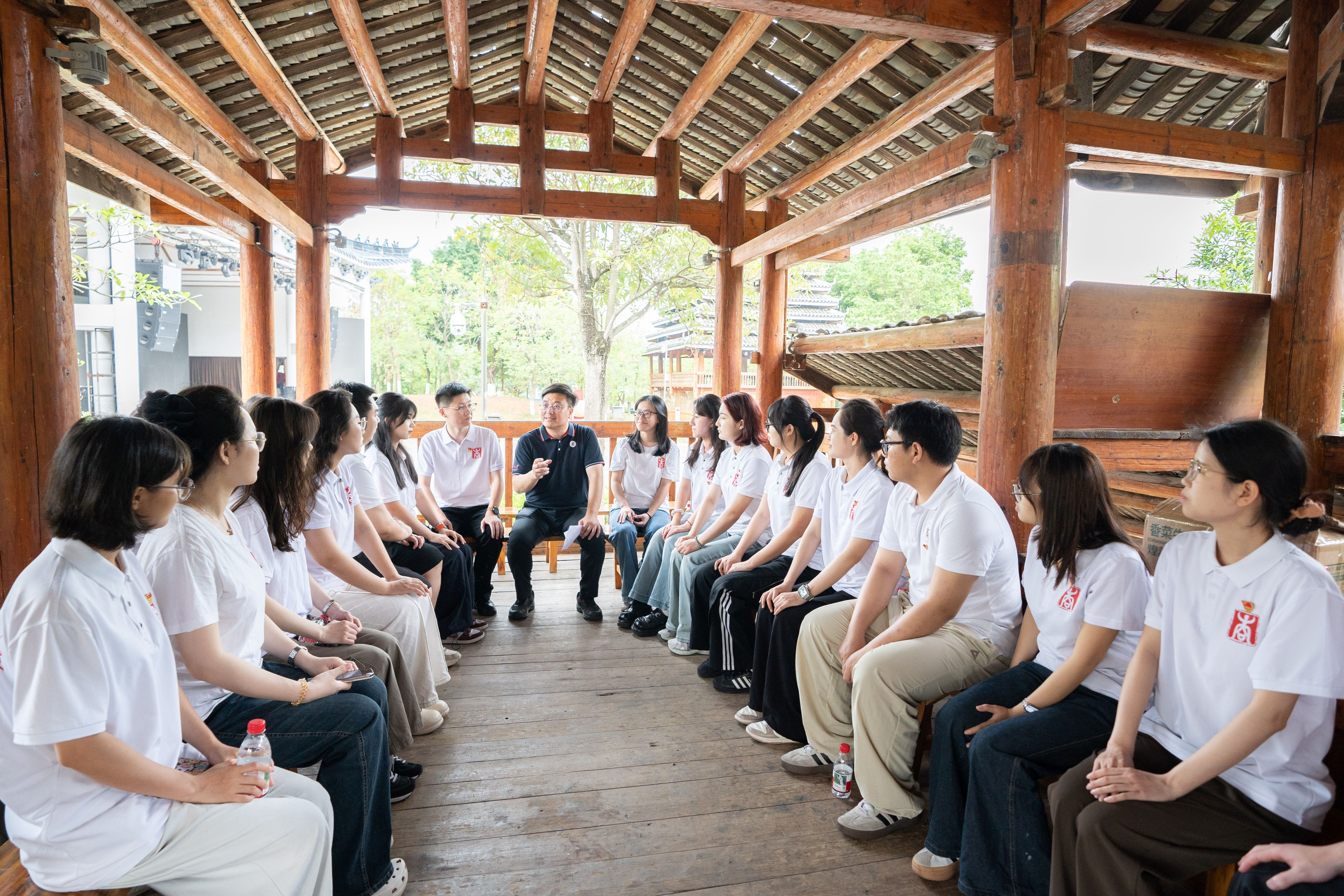 在认真听取大家的发言后,黄晋充分肯定了同学们积极思考、主动实践的良好风貌,他指出,铸牢中华民族共同体意识是国家统一之基、民族团结之魂、青年成长之要。他希望同学们进一步坚定文化自信,增强“五个认同”,在互学互鉴中共同成长,把个人理想融入国家发展和民族复兴的伟大事业中,像石榴籽一样紧紧抱在一起,用青春书写民族团结进步的新篇章。学院团委副书记郁文丹与同学们交流,她鼓励同学们在日常学习、生活中主动做好民族团结的“连心桥”,用年轻人喜欢的方式——无论是新媒体传播、社团活动还是志愿服务,去传递“中华民族一家亲”的温度与力量。