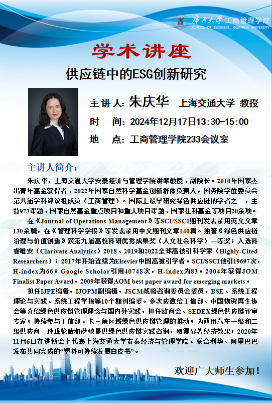 学术讲座|供应链中的ESG创新研究