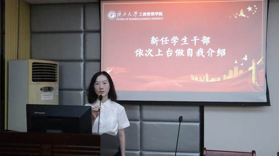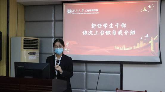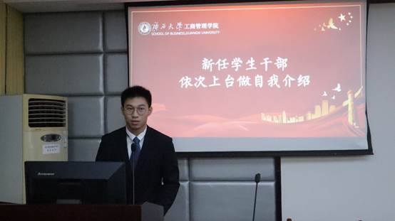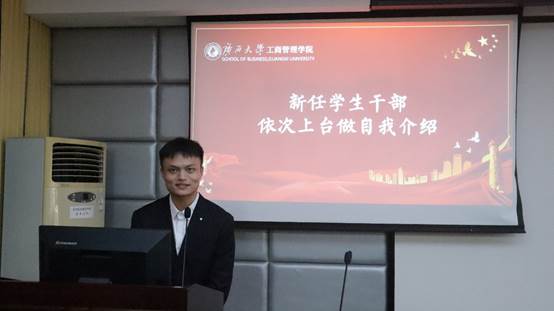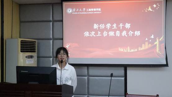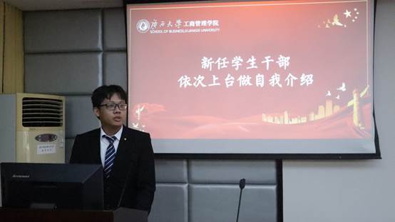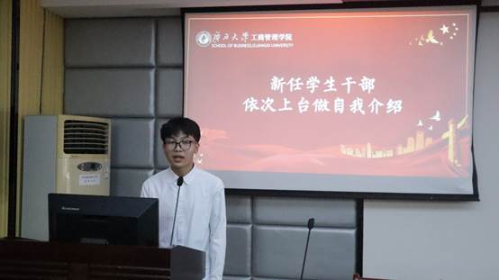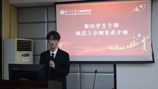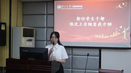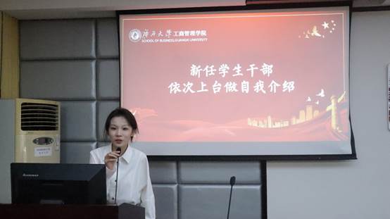 名单宣读完毕,新任学生干部上台依次进行自我介绍。