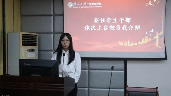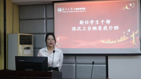 (学生团委副书记杨吉兰进行自我介绍)