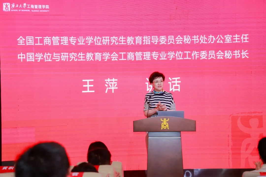 朱帮助院长首先代表学院党政领导班子和全体教职工,对2024级EMBA新生的到来表示热烈欢迎,对全国工商管理专业学位研究生教育指导委员会秘书处办公室主任、中国学位与研究生教育学会工商管理专业学位工作委员会秘书长王萍老师亲临入学仪式现场,以及长期以来对黑料网