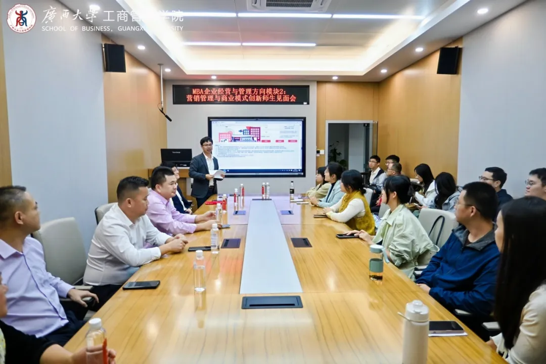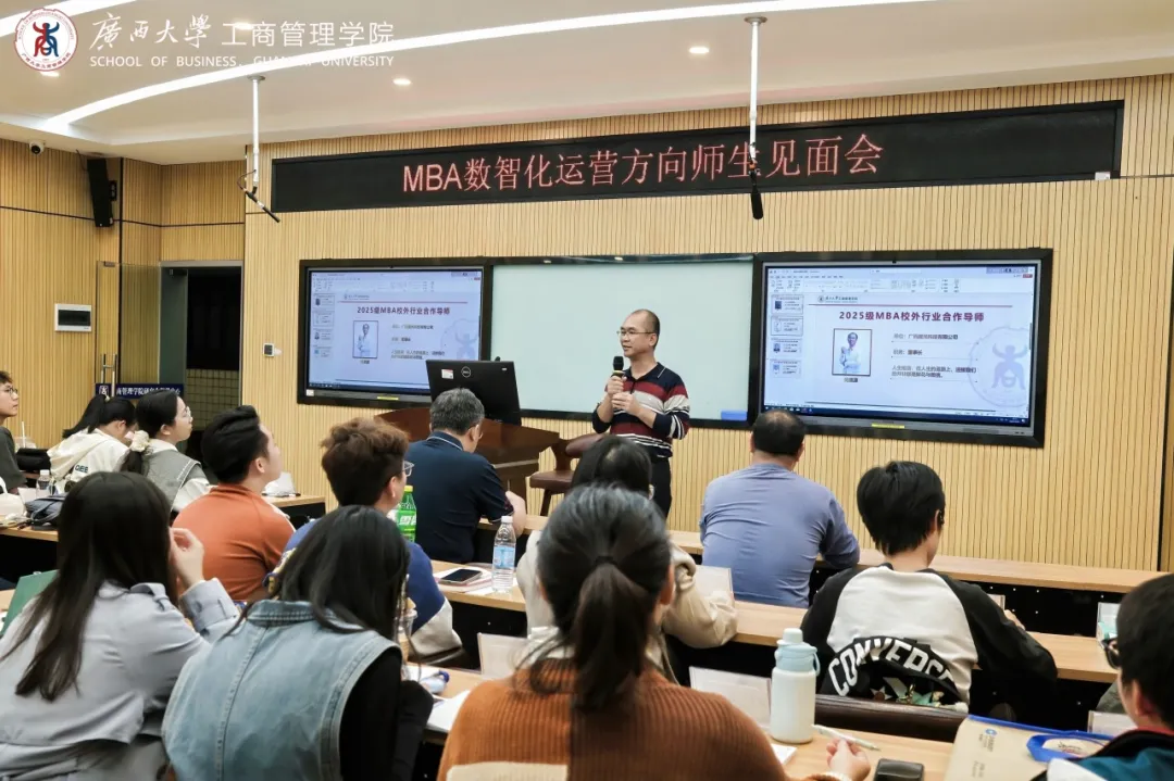 当晚18:30起,多场师生见面会分别在学院各教室同步举行,覆盖MBA各方向(科技产业运营、中国-东盟国际商务管理、数智化运营管理、科技金融、企业经营与管理五大模块)、EMBA、会计硕士和旅游管理硕士等项目。各位导师从专业学习、工作实践与行业发展等多个角度,与学生们进行亲切深入交流,加深了同学们对各行各业的认知,加深理论联系实际,为今后的学习研究助力。
