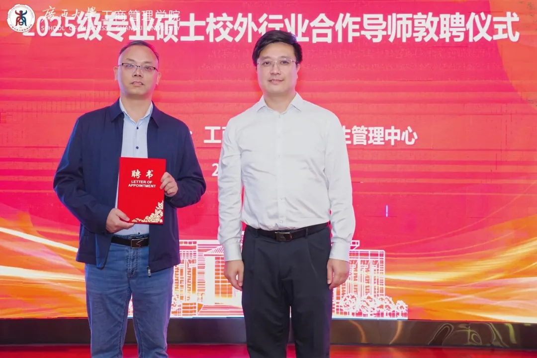 在学院内隆重举办了“2025级专业硕士校外行业合作导师敦聘仪式”。本次活动旨在进一步加强校企合作,推动产学研深度融合,提升专业硕士培养质量,为学生搭建更广阔的职业发展平台。仪式吸引了众多校外行业合作导师、校内教师及学生参与。