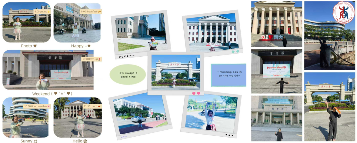 随后,校园亲子打卡游戏环节如约而至,迅速将活动气氛推向高潮。校友们手持印着校园标志性建筑的明信片,化身“向导”,带领孩子开启一场“按图索骥”的校园探索之旅。从古朴的教学楼到雅致的林荫道,孩子们在父母的耐心指引下,兴奋地寻找明信片上的建筑、拍照记录。这一路,孩子们不仅亲手触摸到父母的青春足迹,更在亲子互动中与长辈建立起生动而深刻的情感联结,一幕幕温馨画面成为本次活动中最动人的记忆。