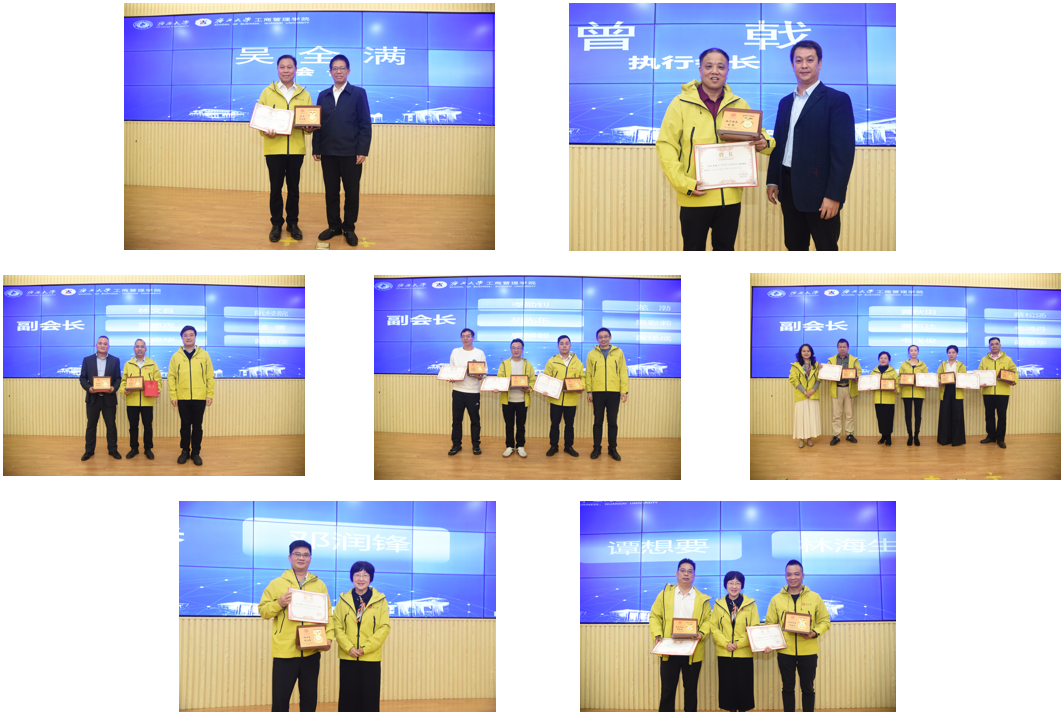 在全场的见证下,大会举行了隆重的授牌与聘任仪式。党委副书记宁旭初为EDP校友会授予会旗,鲜红的会旗象征着校友与母校血脉相连的深厚情谊;同时,领导们为校友会首届顾问、会长、执行会长、副会长等核心成员颁发聘书,寄托了学校对校友会发展的殷切期望。新任会长吴全满在就职演讲中表示,将带领校友会坚守“服务校友、回馈母校、贡献社会”的初心使命,以“同心筑梦想,携手创未来”为行动指南,全力搭建资源共享、智慧汇聚、共同成长的优质平台,推动校友与母校、校友与校友之间的深度联动与协同发展。
