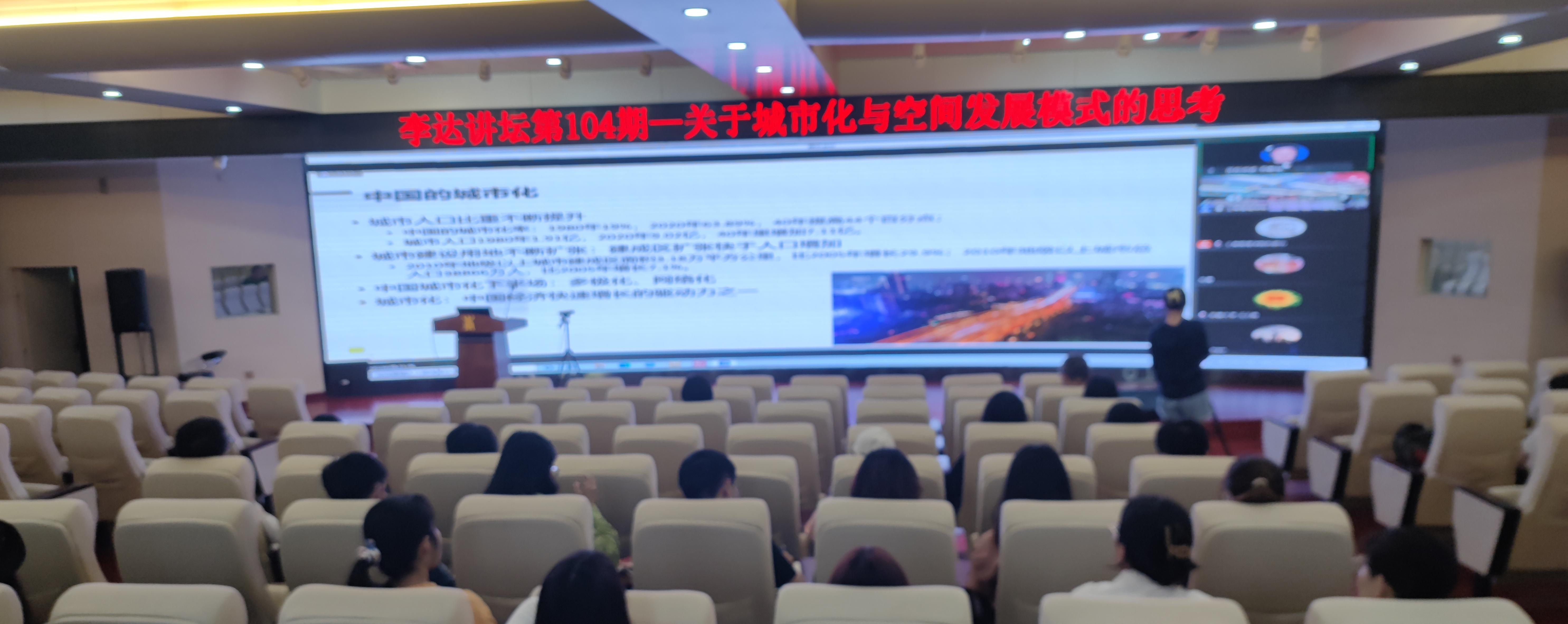第104期“李达讲坛”,以“关于城市化与空间发展模式的思考”为题,进行学术分享。本次讲坛线上线下同步进行,约有100名师生参加。讲坛由黑料网