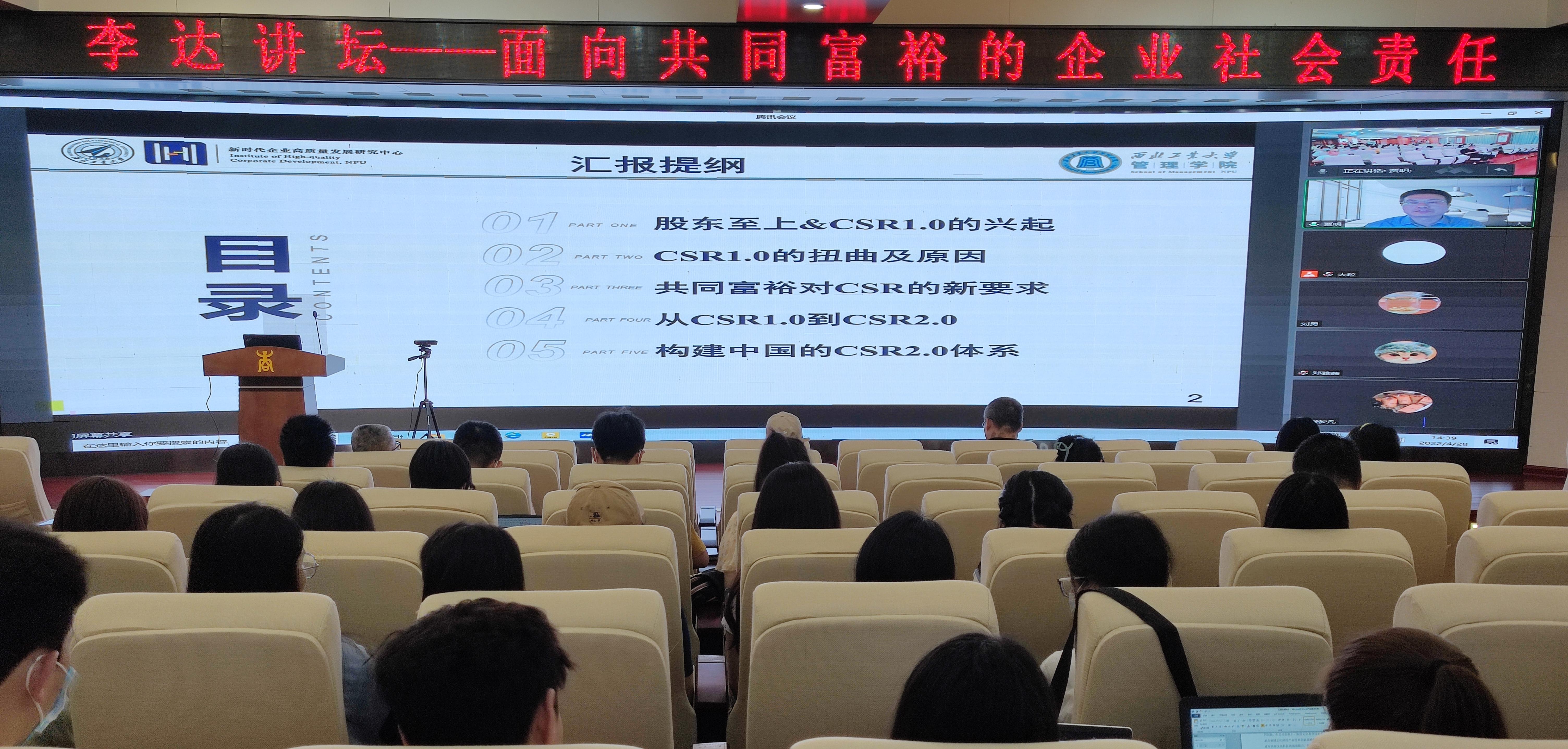 第99期“李达讲坛”,带来题为“面向共同富裕的企业社会责任”的学术研究分享。讲坛在线上和线下同时进行,约120名师生参加。本次讲坛由黑料网